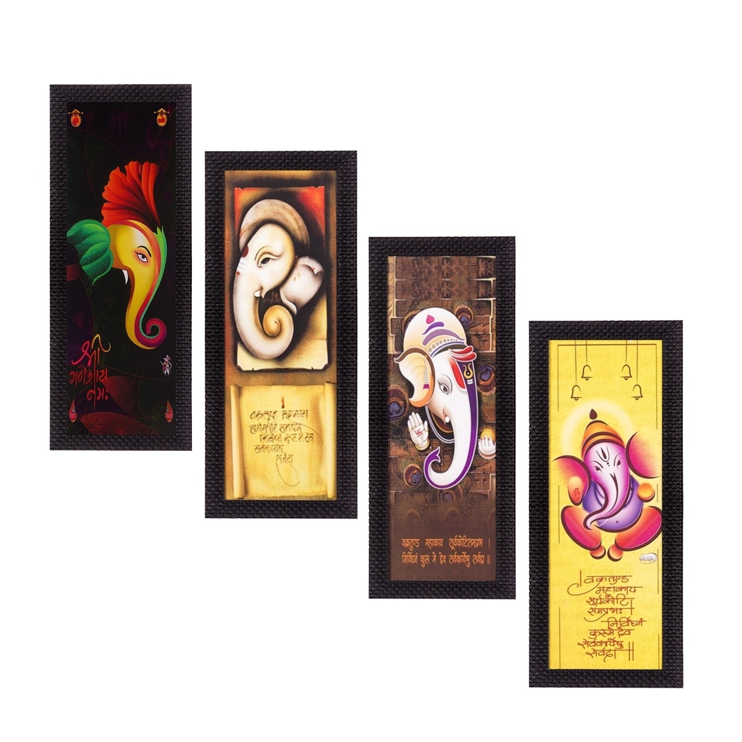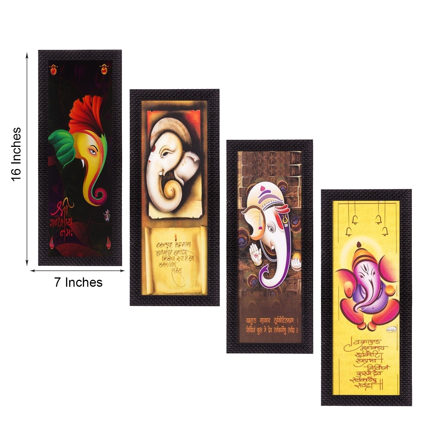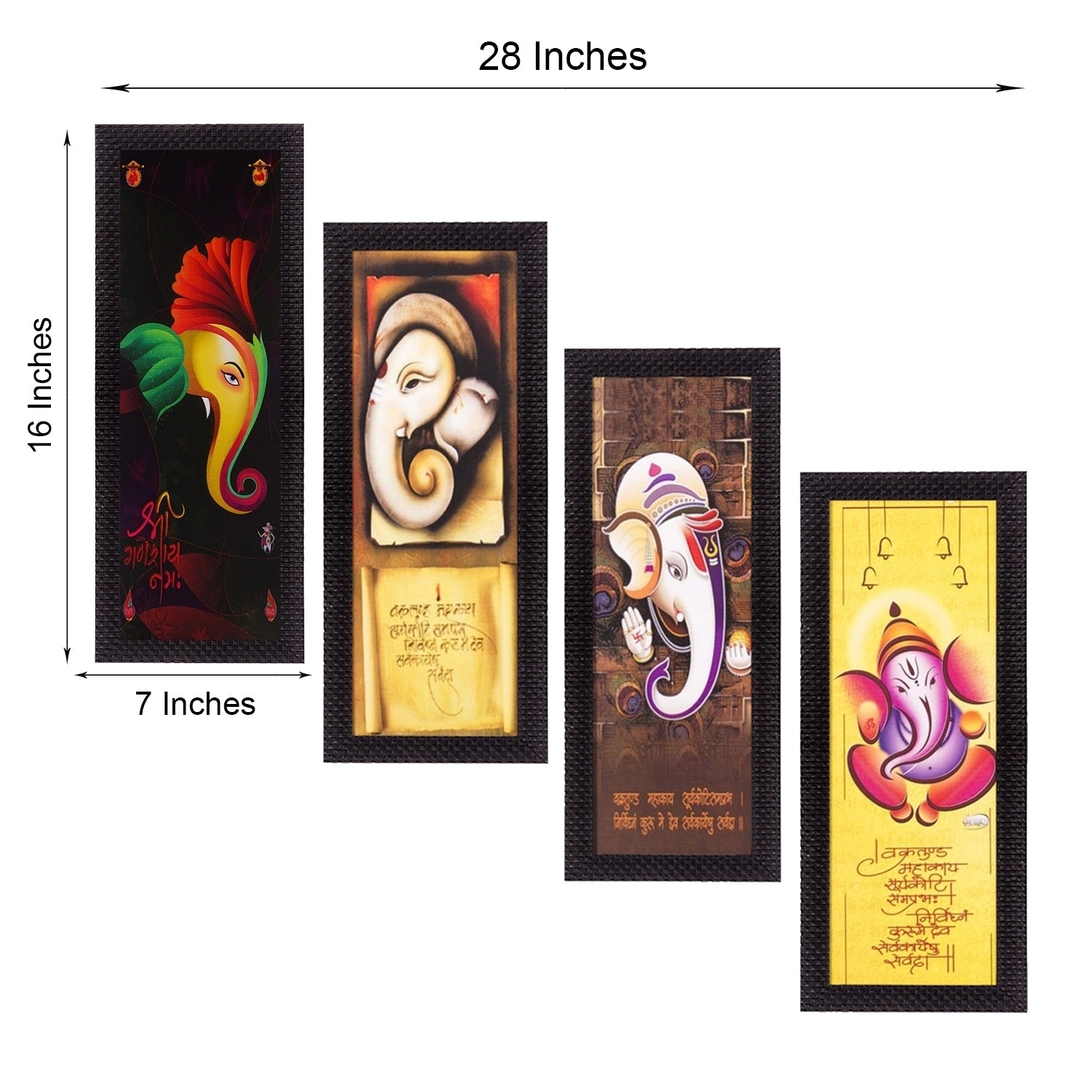Package Content - Set Of 4 Lord Ganesha Satin Matt Texture UV Art Painting