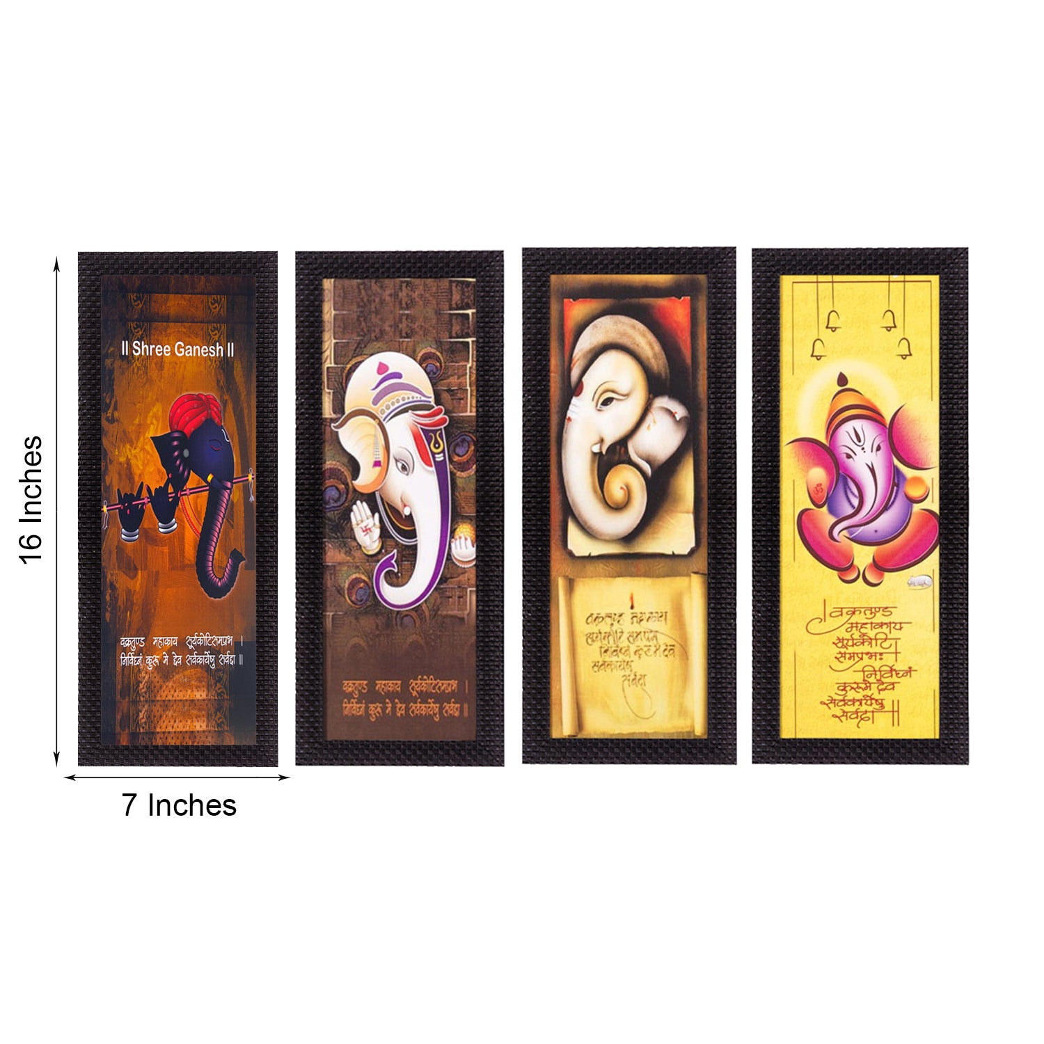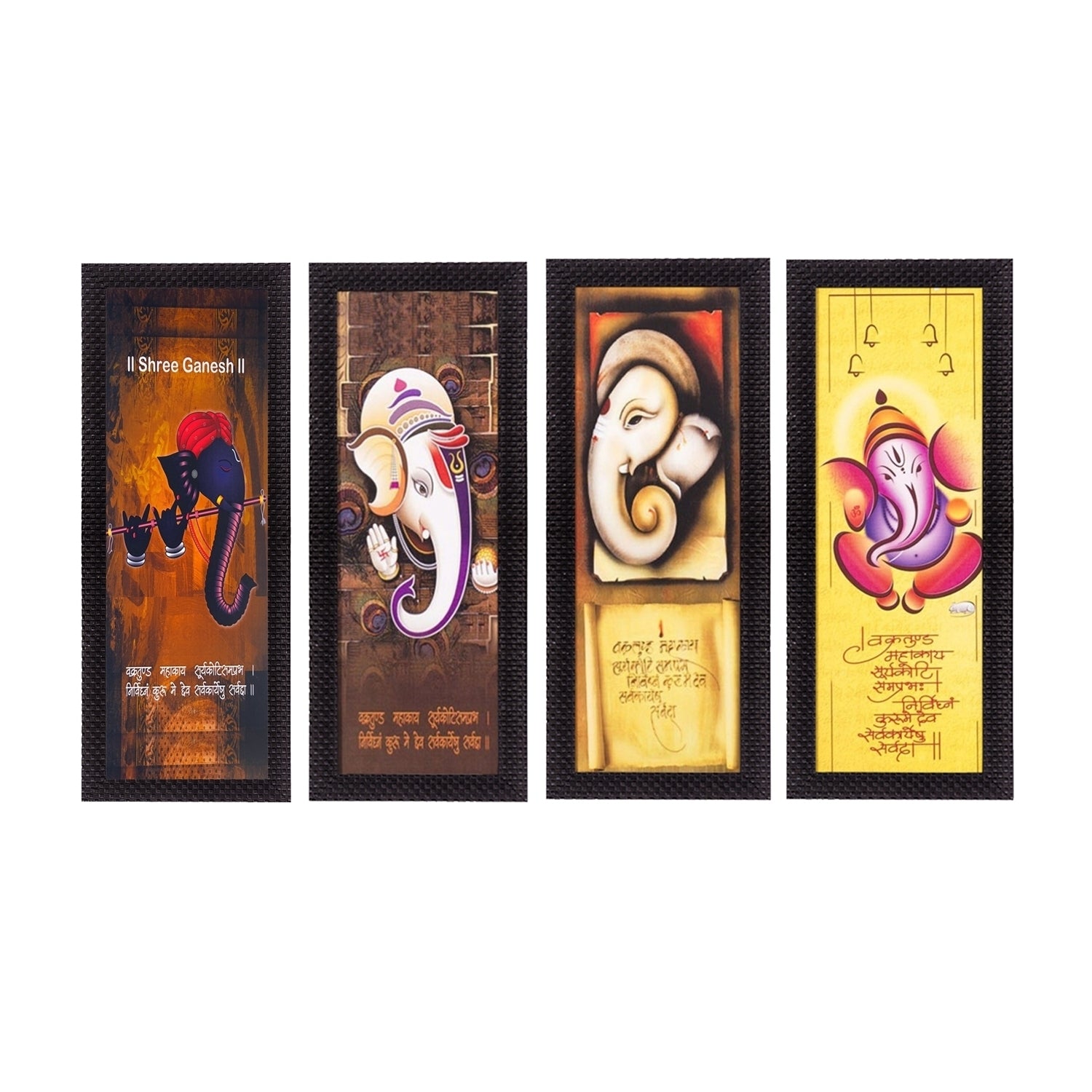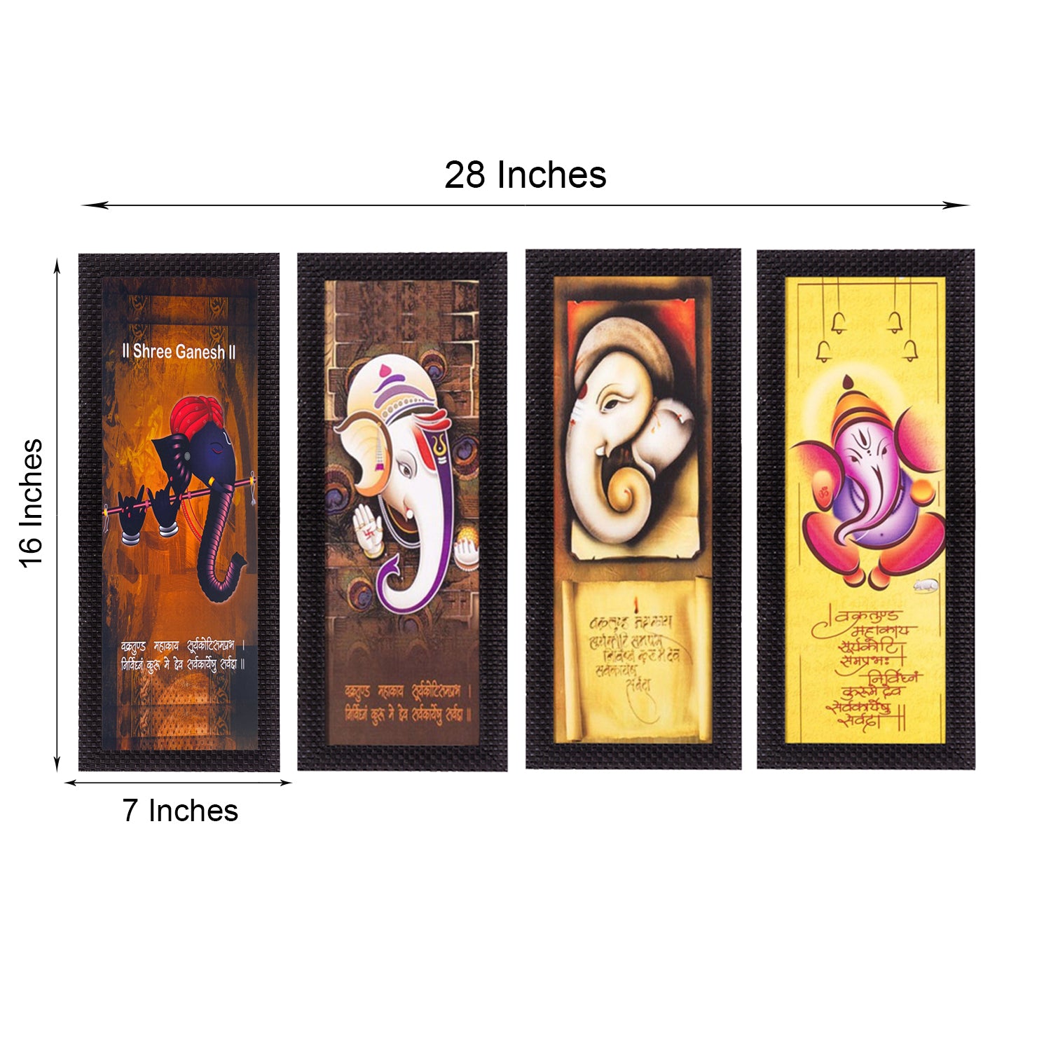 Package Content - Set Of 4 Lord Ganesha Satin Matt Texture UV Art Painting