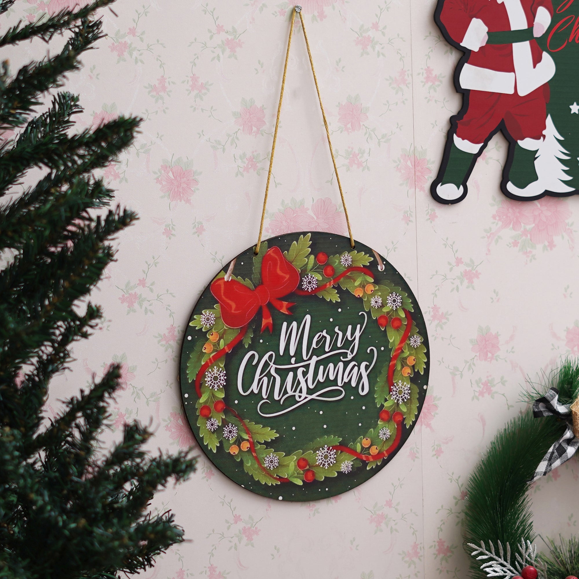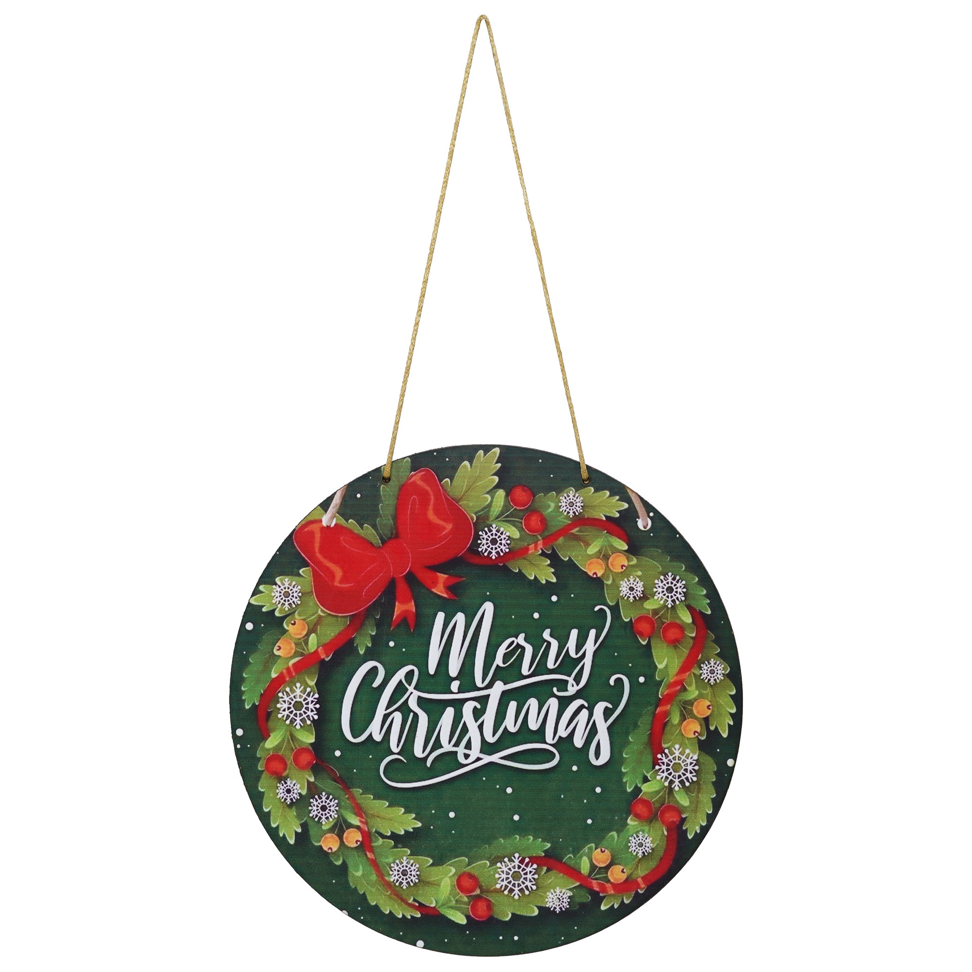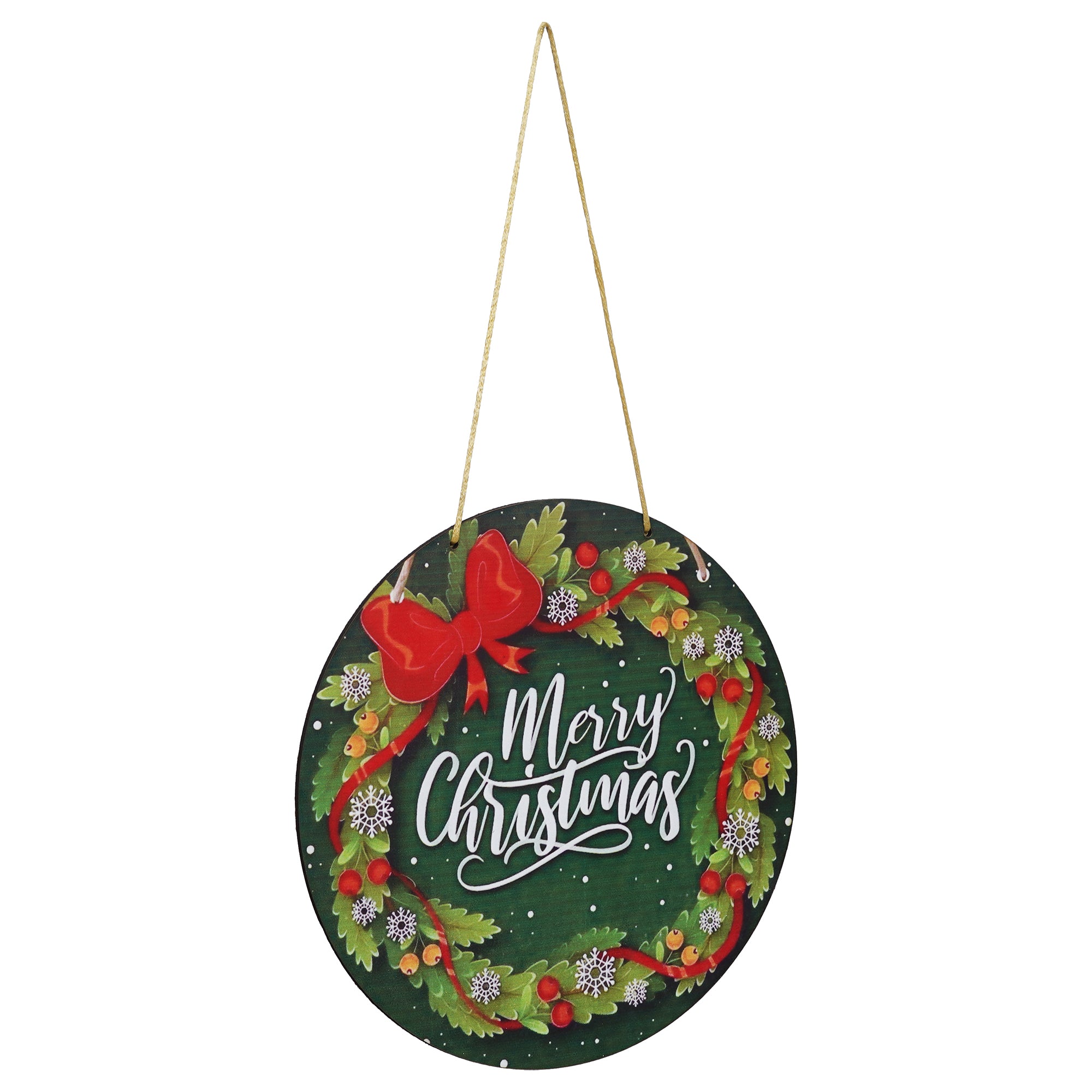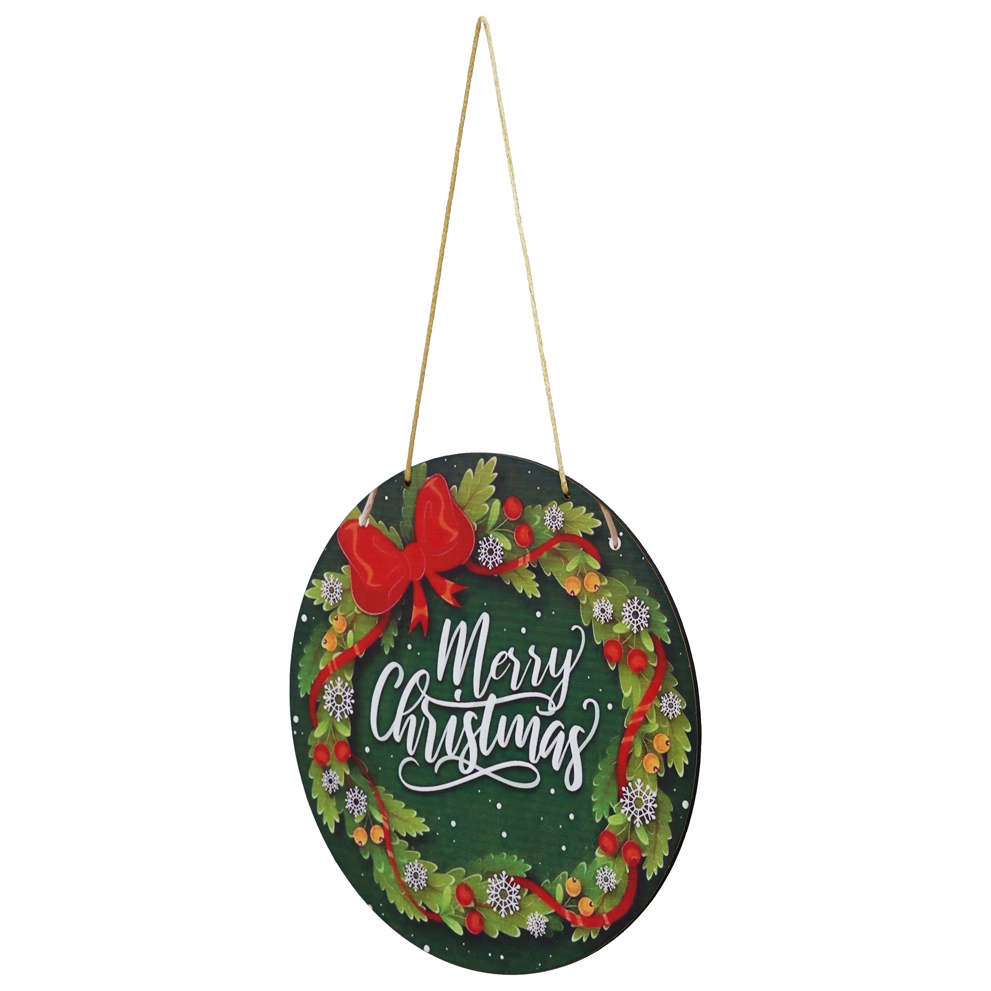 Package Content - One Christmas Wreath Decorations Merry Christmas Printed Wooden Door Wall Hanging