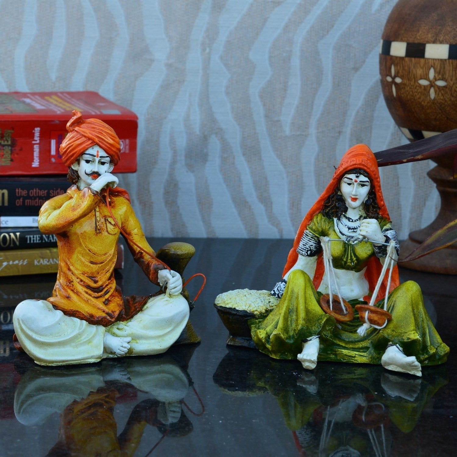 Package Content - One Piece each of Rajasthani Hookah Man and Lady Statue