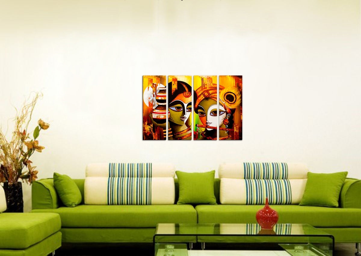 Package Content - 4 Panel Radha Krishna Premium Canvas Painting