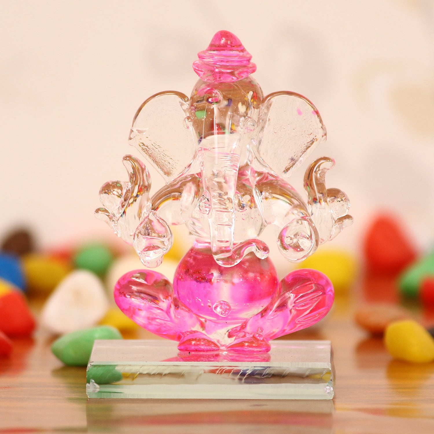 Package Content - One Pink and Transparent Double Sided Crystal Car Ganesha Showpiece