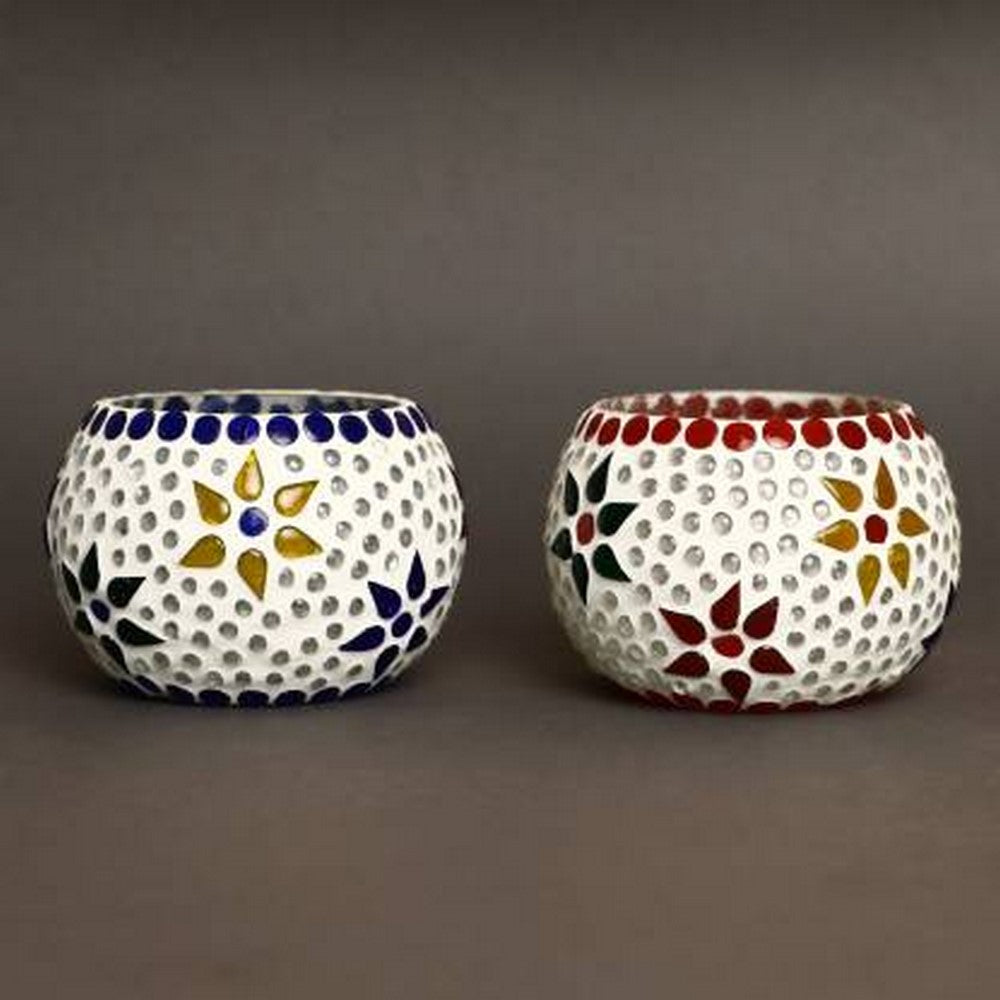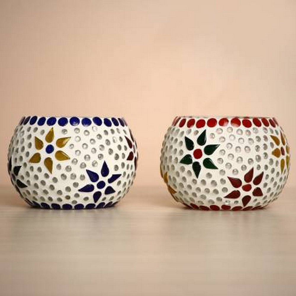 Product Description - Glorify your celebrations with eCraftIndia's set of 4 mosaic glass decorative tea light holders or diya that helps you make your celebrations fun and memorable. These tea light holders will not fail to leave a lasting impression on your guest. Made from mosaic glass this wonderful piece of art will surely accentuate your home decor. It serves as a great gift, especially around religious celebrations and festivities. Each tea light holder is diligently handcrafted by skilled artisans from the house of eCraftIndia using various traditional techniques.