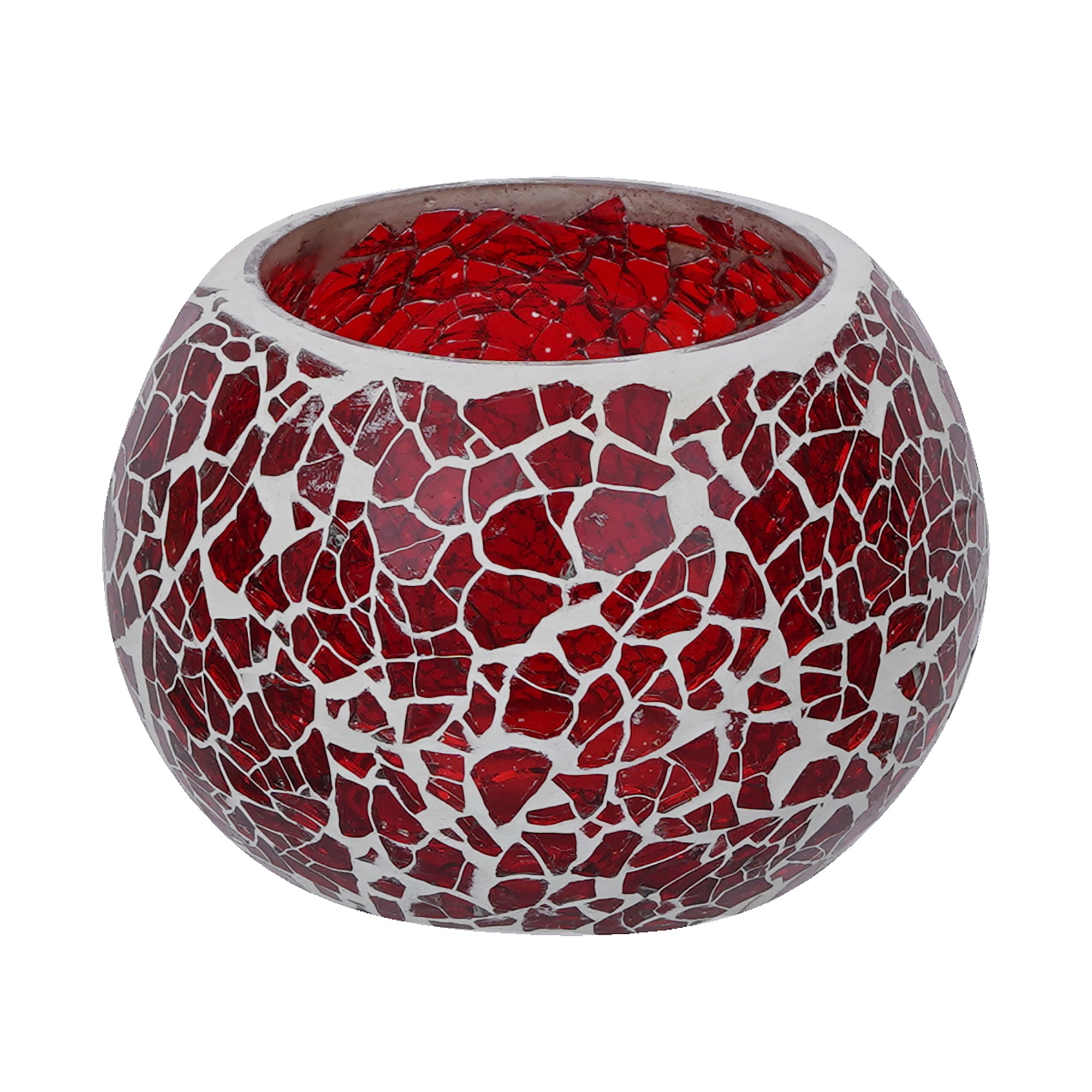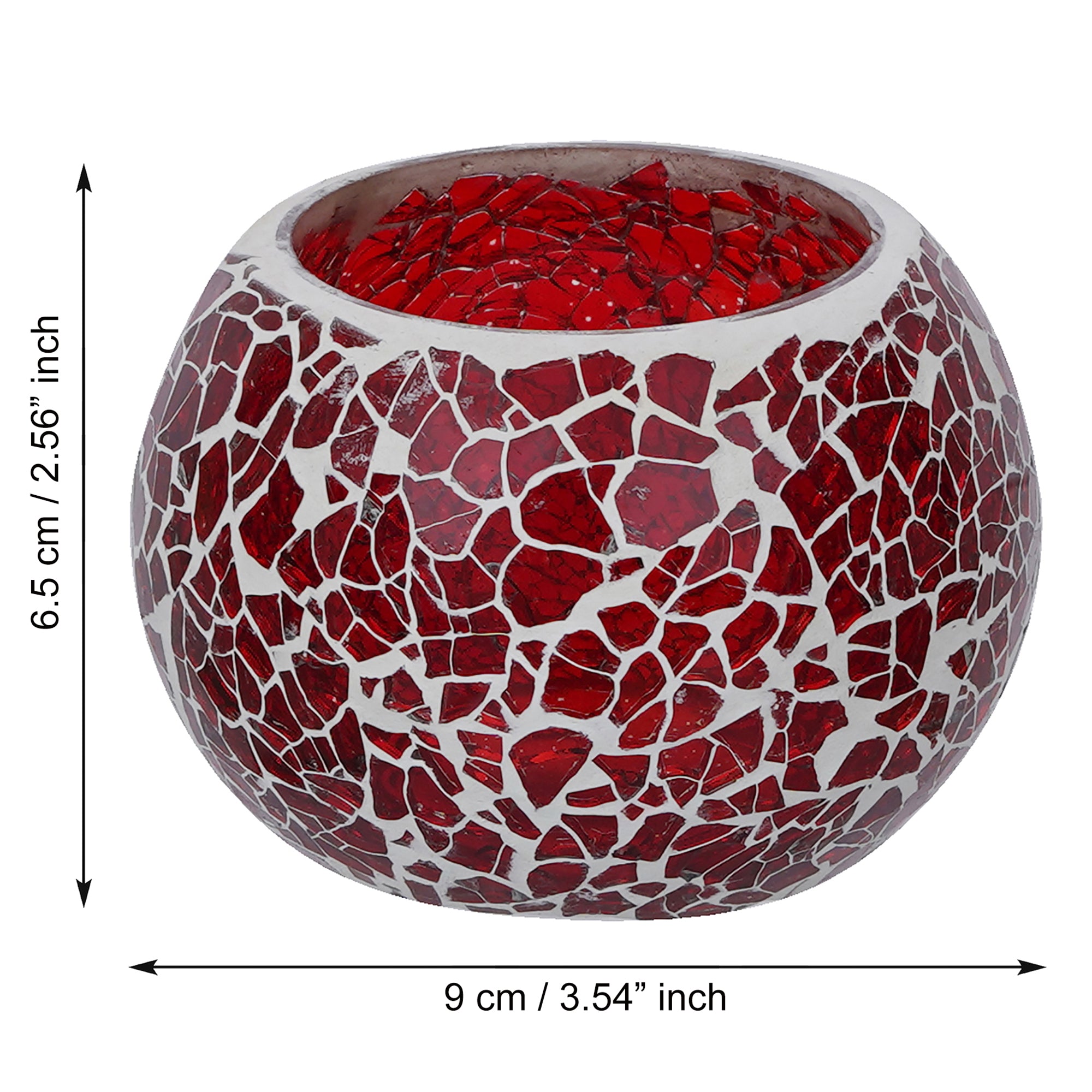 | Package Content - | Red Mosiac Glass Decorative Tea Light Holder/diya |