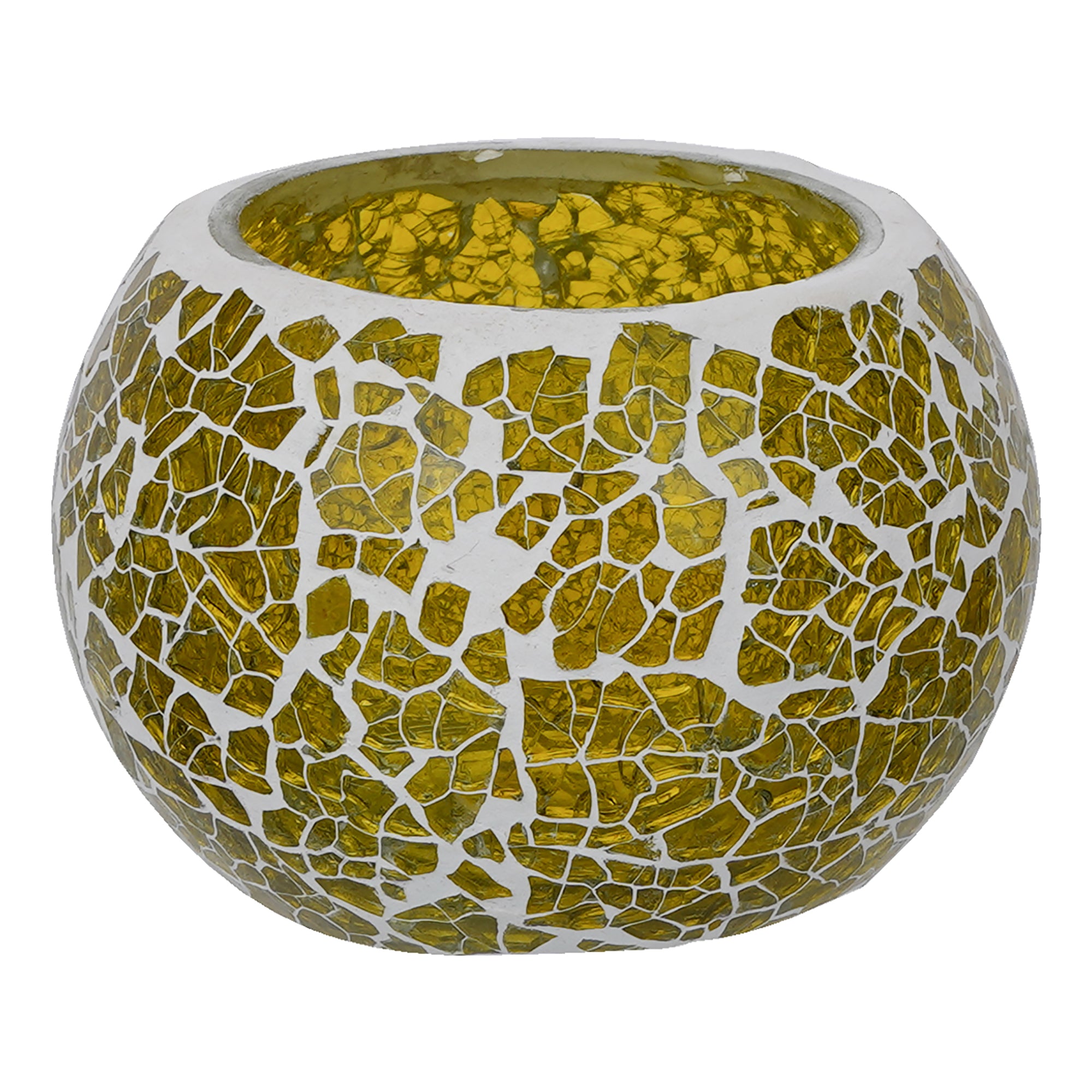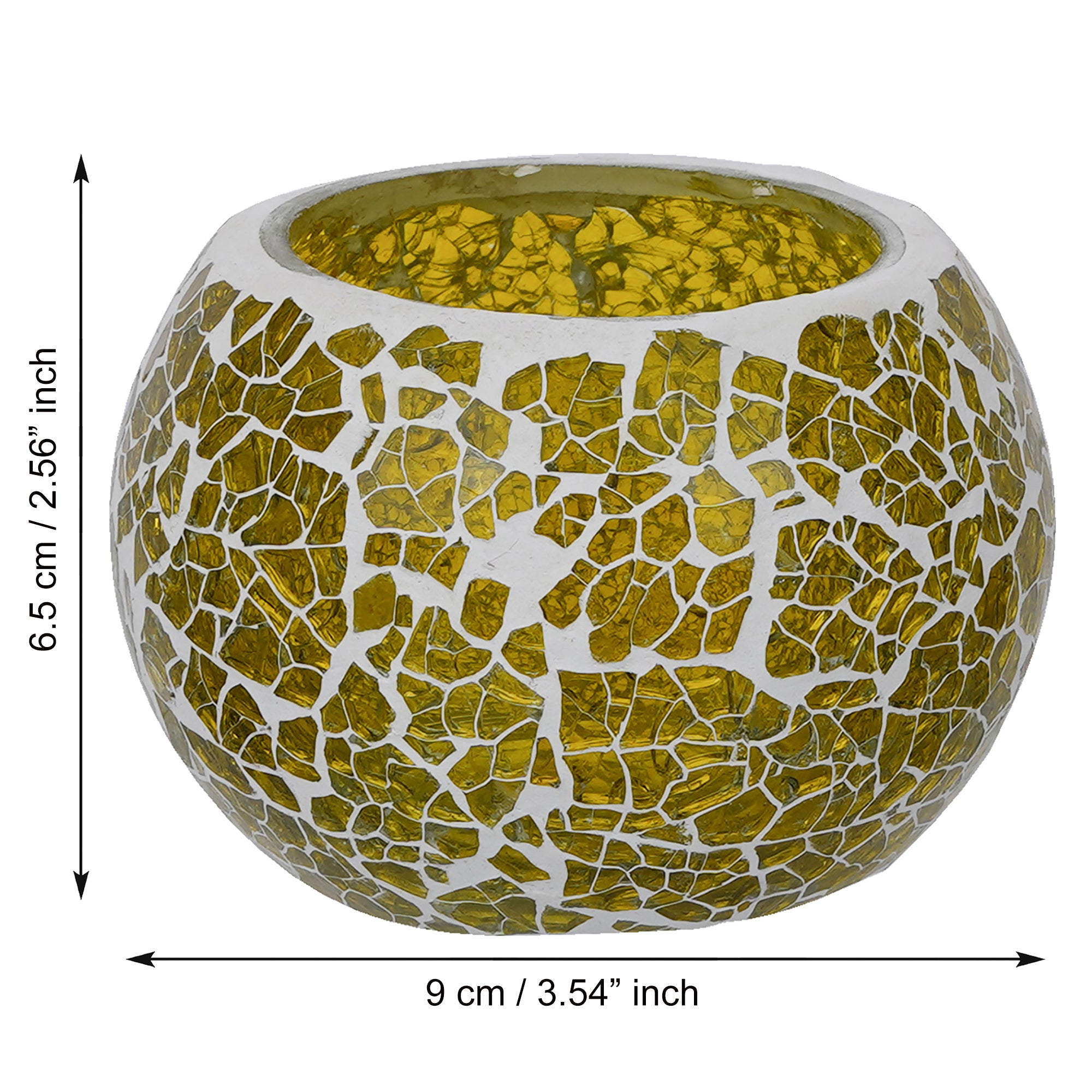 | Package Content - | Yellow Mosiac Glass Decorative Tea Light Holder/diya |