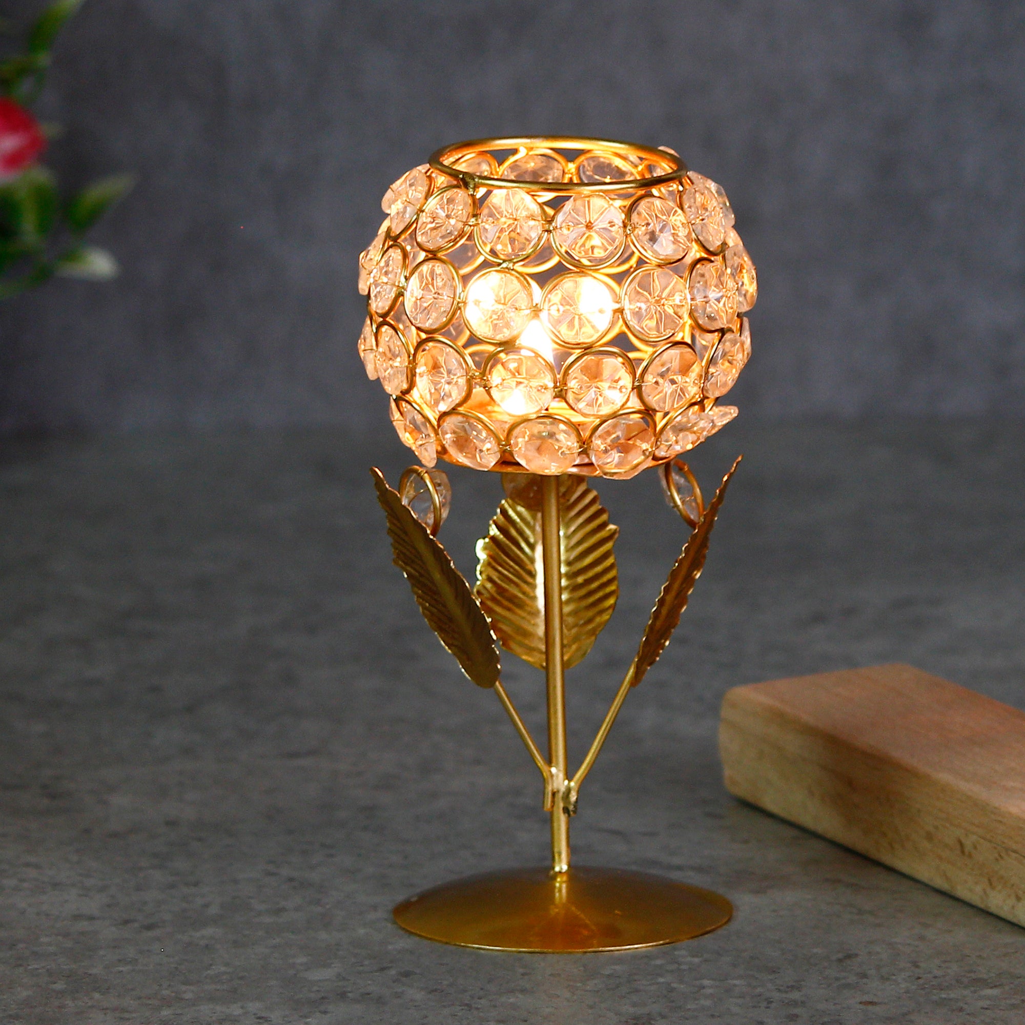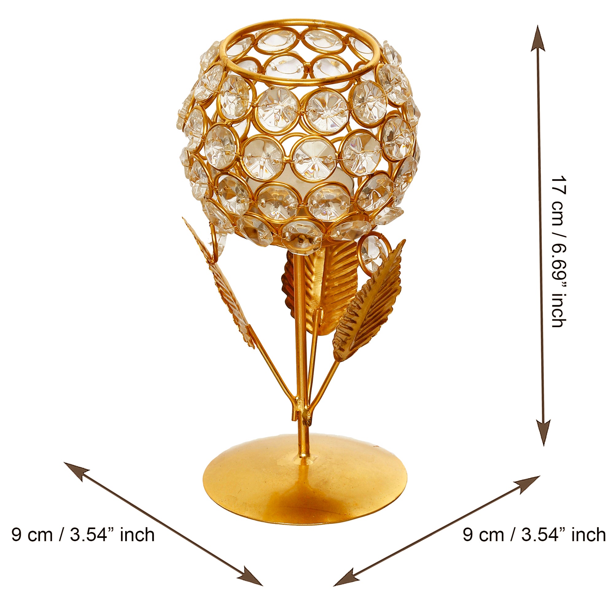 Package Content - One Glass With Leaf Shape Crystal Tea Light Holder