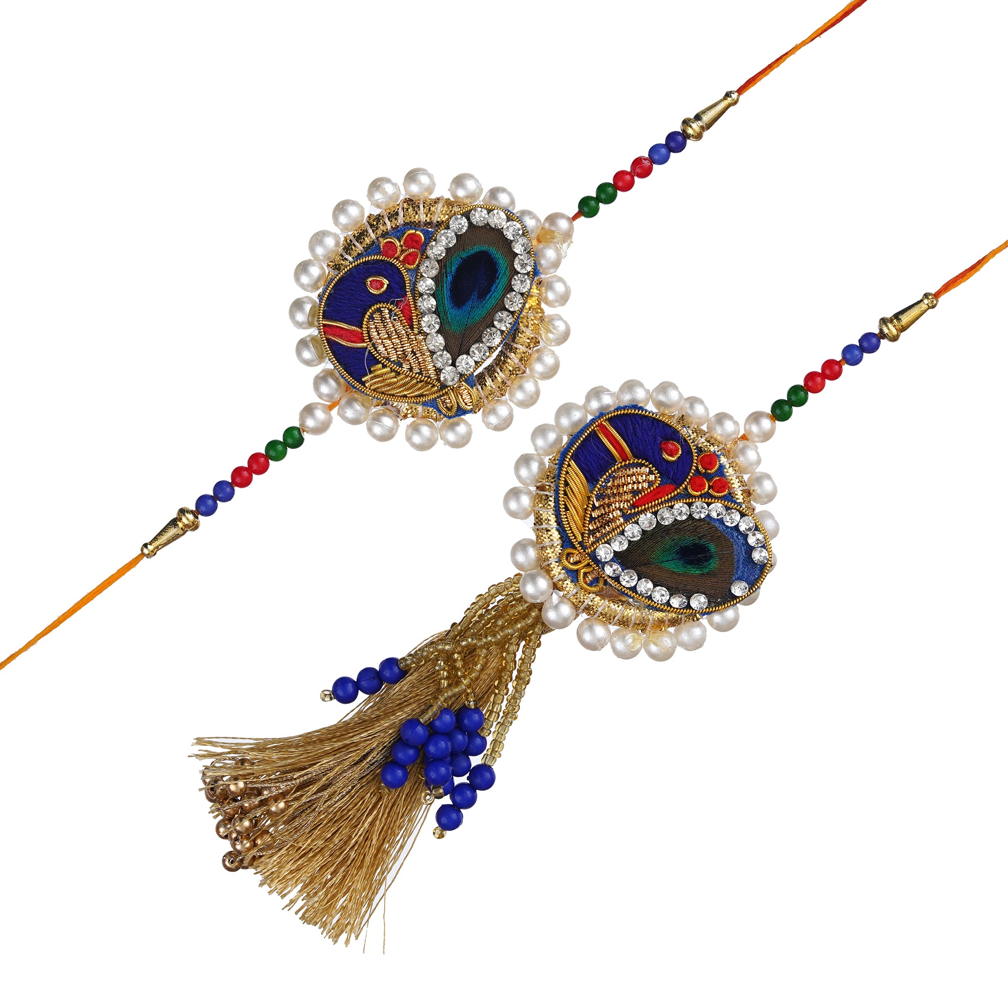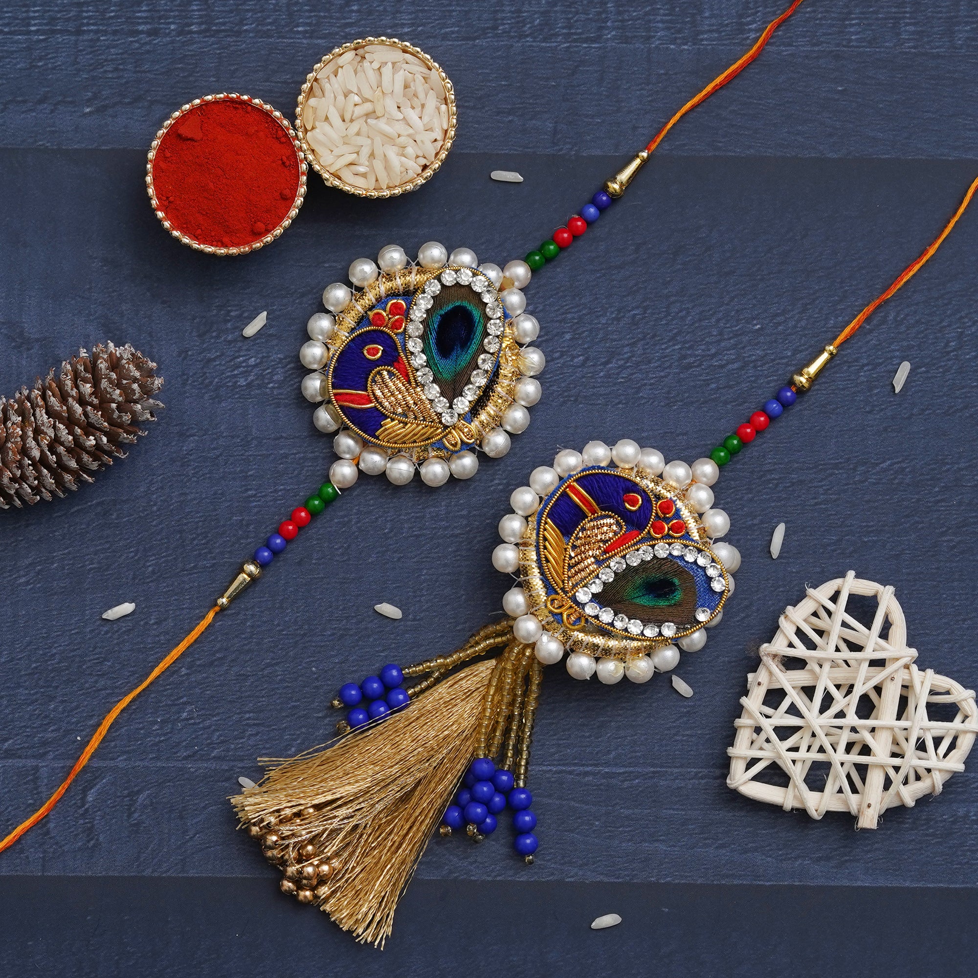 Celebrate the eternal bond of love and affection with the eCraftIndia Bhaiya Bhabhi Rakhis with Roli Chawal Pack. This exclusive rakhi gift hamper is perfect for expressing your heartfelt emotions to your brother, bhaiya, bhai, and bhabhi, sister on the auspicious occasion of Raksha Bandhan. The set includes beautifully designed Bhaiya Bhabhi Rakhis that symbolize the special relationship between a brother and sister-in-law. The Roli Chawal Pack allows you to perform traditional rituals with ease. Make this Raksha Bandhan truly special by tying these elegant rakhis and conveying your warm wishes to your beloved siblings.