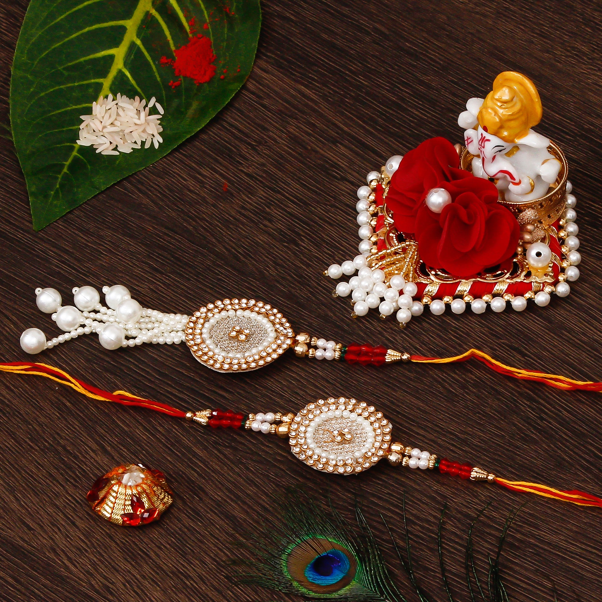 Bhaiya Bhabhi Rakhi with Lord Ganesha Idol on Decorative Plate for Car & Home and Roli Tikka Matki - eCraftIndia Online