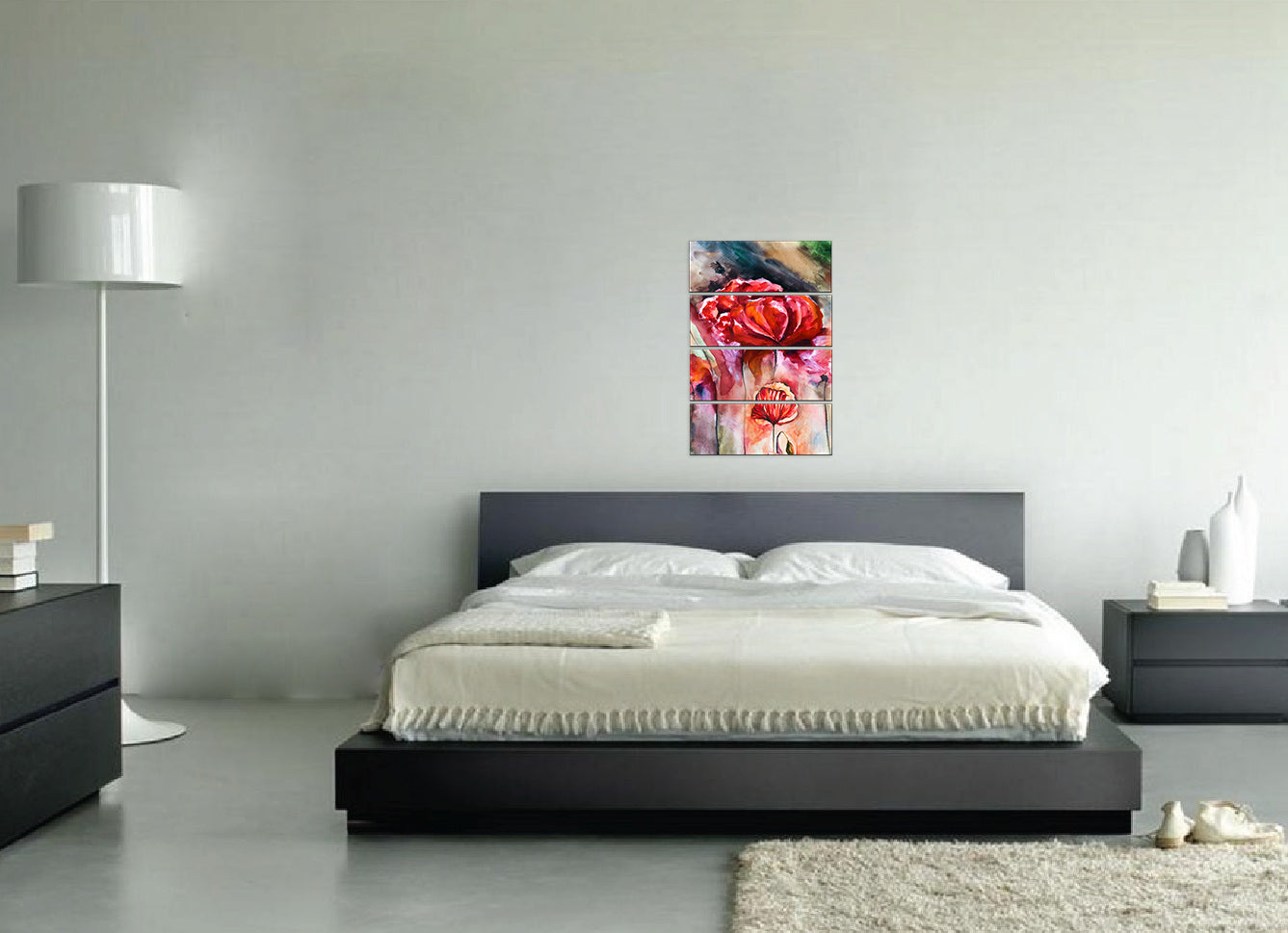 Package Content - 4 Panel Beautiful Red Rose Premium Canvas Painting