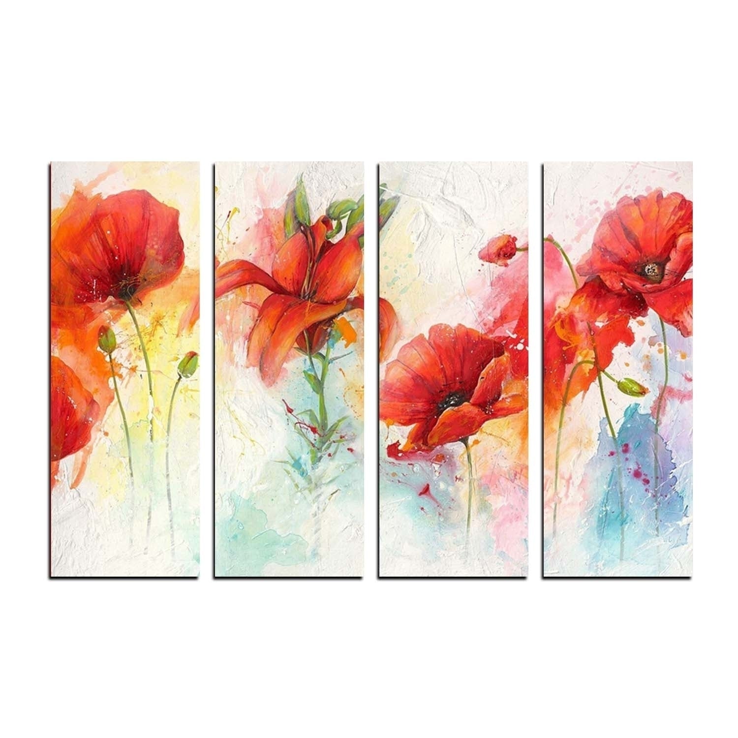 Package Content - 4 Panel Decorative Flowers Premium Canvas Painting