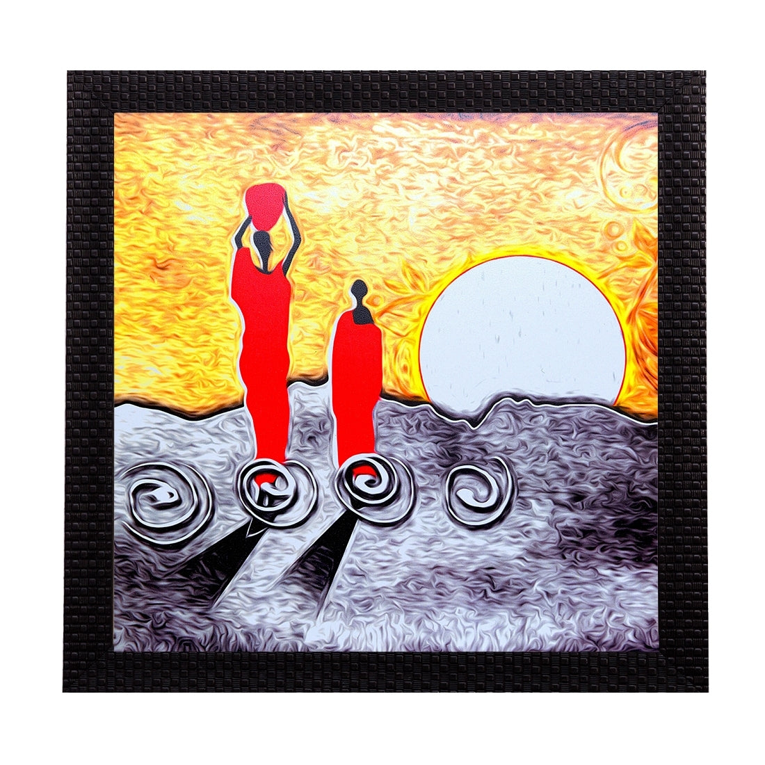 Package Content - One Abstract Village Life Pose Satin Matt Texture UV Art Painting