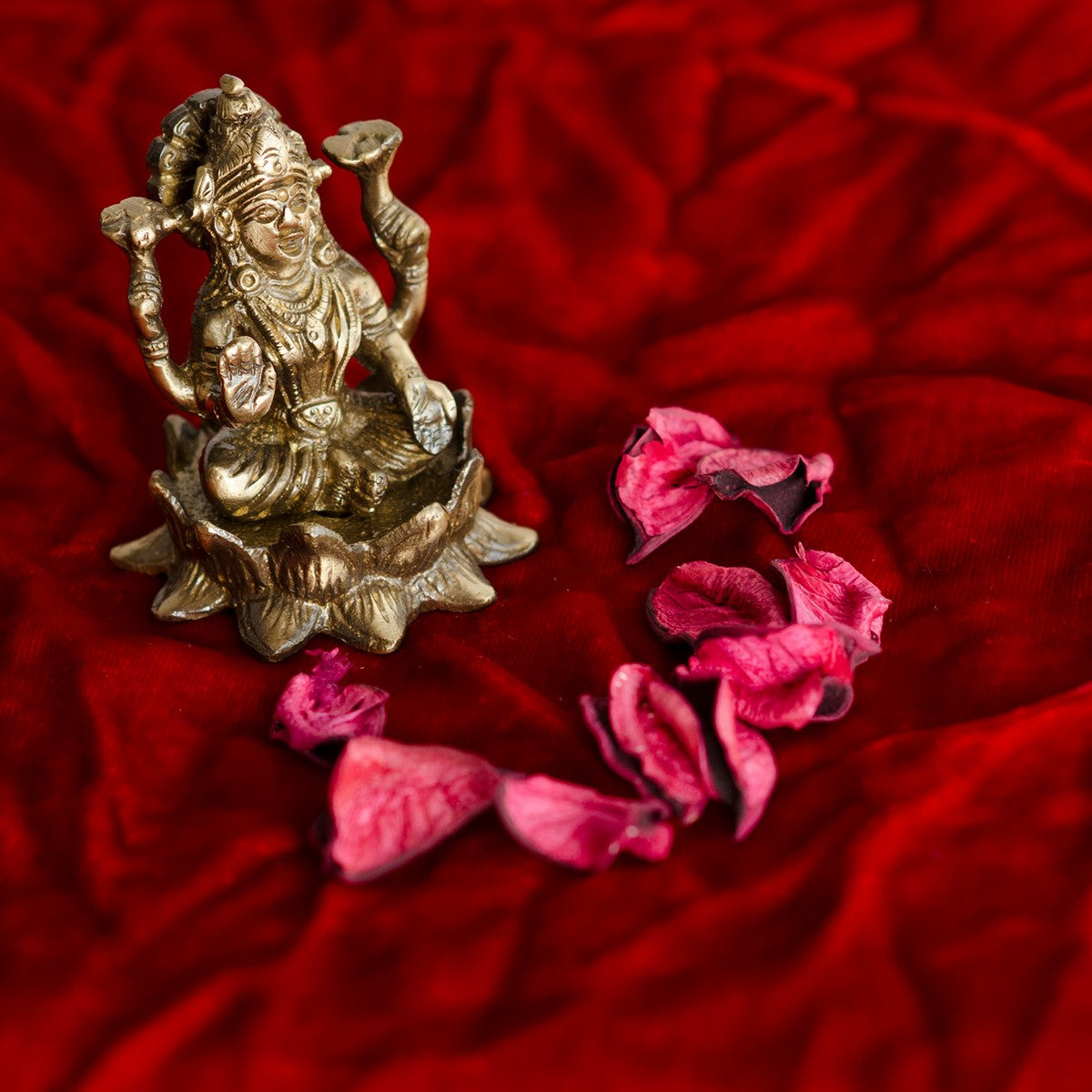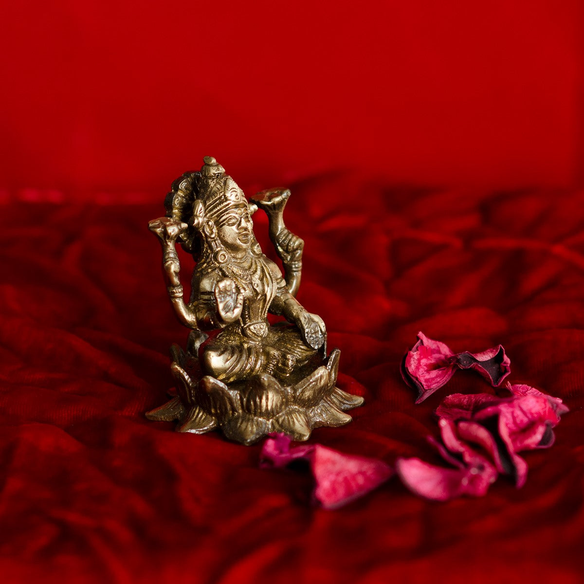 Package Content - One Unit Brass Goddess Laxmi on Lotus