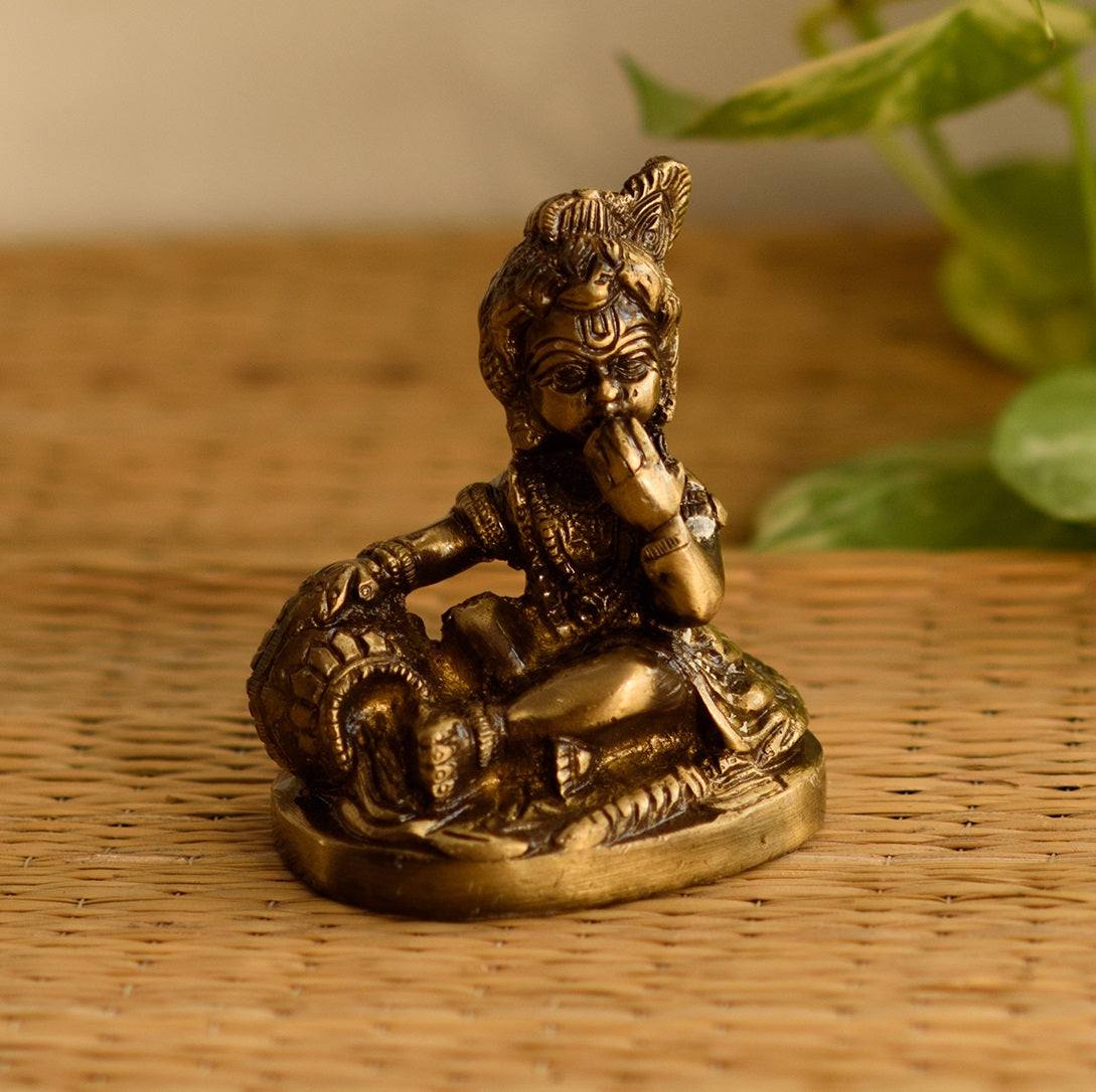 Product Description - The lucky statue of Laddu Gopal eating makhan will brighten your home and add elegance to your decor. It is crafted of high-quality brass and displays artistic brilliance. This brass statue will add style to your home and workplace and be well-liked by your visitors. It is a wonderful gift, especially during festive and religious occasions for your loved ones. The house of eCraftIndia's talented artisans used a variety of age-old methods to create this brass laddu Gopal eating makhan idol.