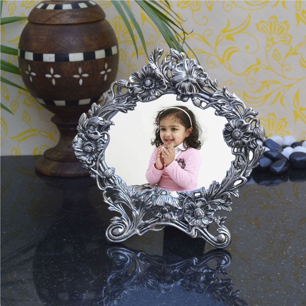 Product Description - Photo frames have forever been in trend as a great memory displayer piece, hasn't it? Display happy memories and precious moments in this unique and attractive Silver White Metal Single Photo Frame. Covered by floral design, it brings to mind the beauty of Indian art and is an attractive accent piece for your tabletop or a wonderful gift. Its versatile design, Intricate artistry, and superlative craftsmanship make this ideal for a unique gift to your loved ones, family, and friends. This photo frame is diligently handcrafted by skilled artisans of eCraftIndia using various traditional techniques. These photo frames can also be attached to your wall as well as placed on the desk of your office or on also study table that will always remind you about your fond memories.