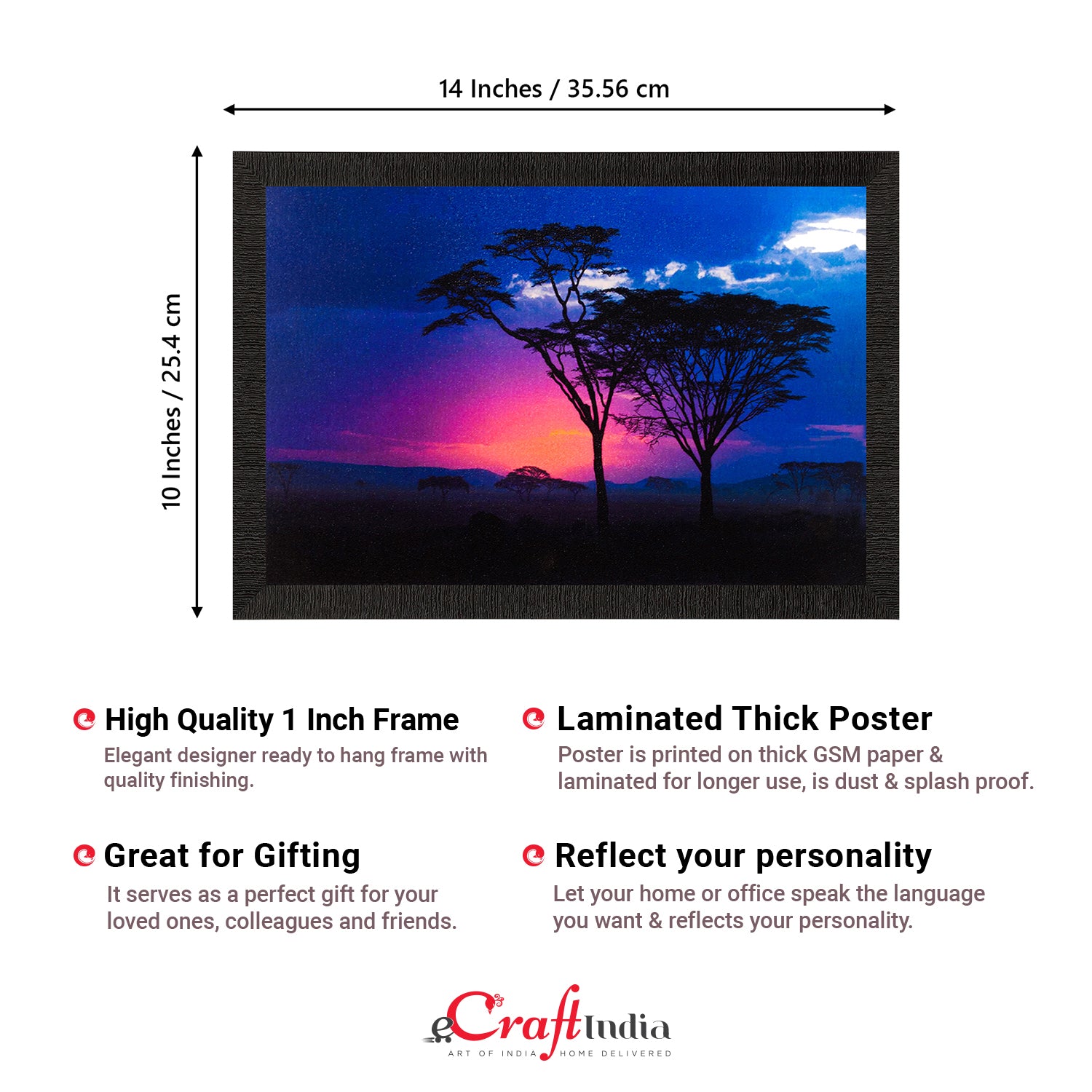Product Description - Decorate your home & office walls with these artistic design Satin Matt Texture Framed UV Art Painting from eCraftIndia. Each design reflects the artistic qualities and time one has taken to design this painting Exquisitely printed and framed, it is also a perfect gifting option for your colleagues, loved ones and family members. These frames don't include glass so it is very light weight and wet cloth can be used to clean it.