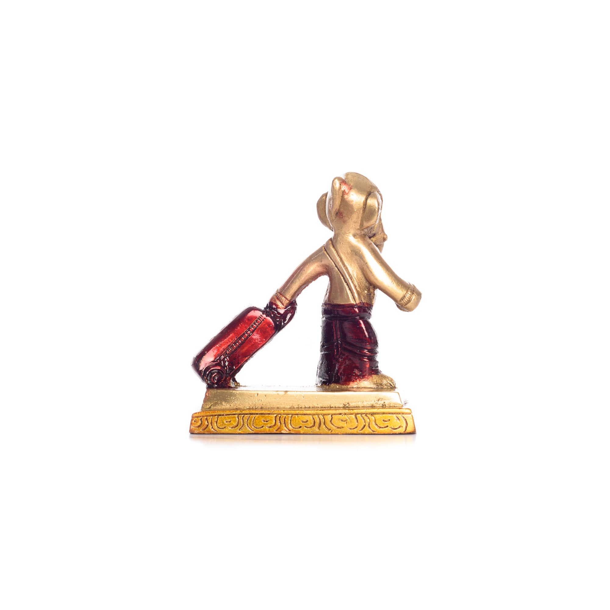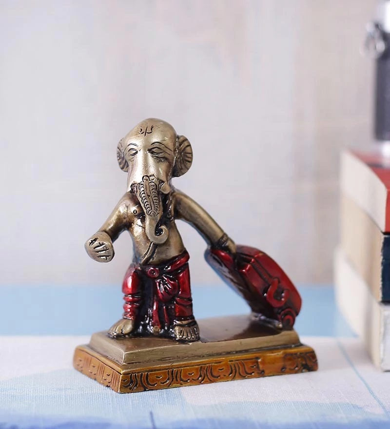 Product Description - If you thought that Ganesha was meant to be only a religious figure, think again! Ganesha, the elephant-headed god is one of the most popular religious deities and is actually a part of modern pop culture too. Decorate your home, office desk, children's desk, and computer table and make them look adorable with this Golden and Brown Brass Ganesha Idol Carrying Happiness Around The World Showpiece by eCraftIndia. So it comes as no surprise that there are several modern and somewhat interesting versions of him appearing everywhere, including the eCraftIndia inventory. Our Ganesha pulls around a red suitcase with him and we would like to believe that he is carrying happiness inside, which he aims to deliver across the world! So why not bring that Ganesha along with his suitcase, into your home too?