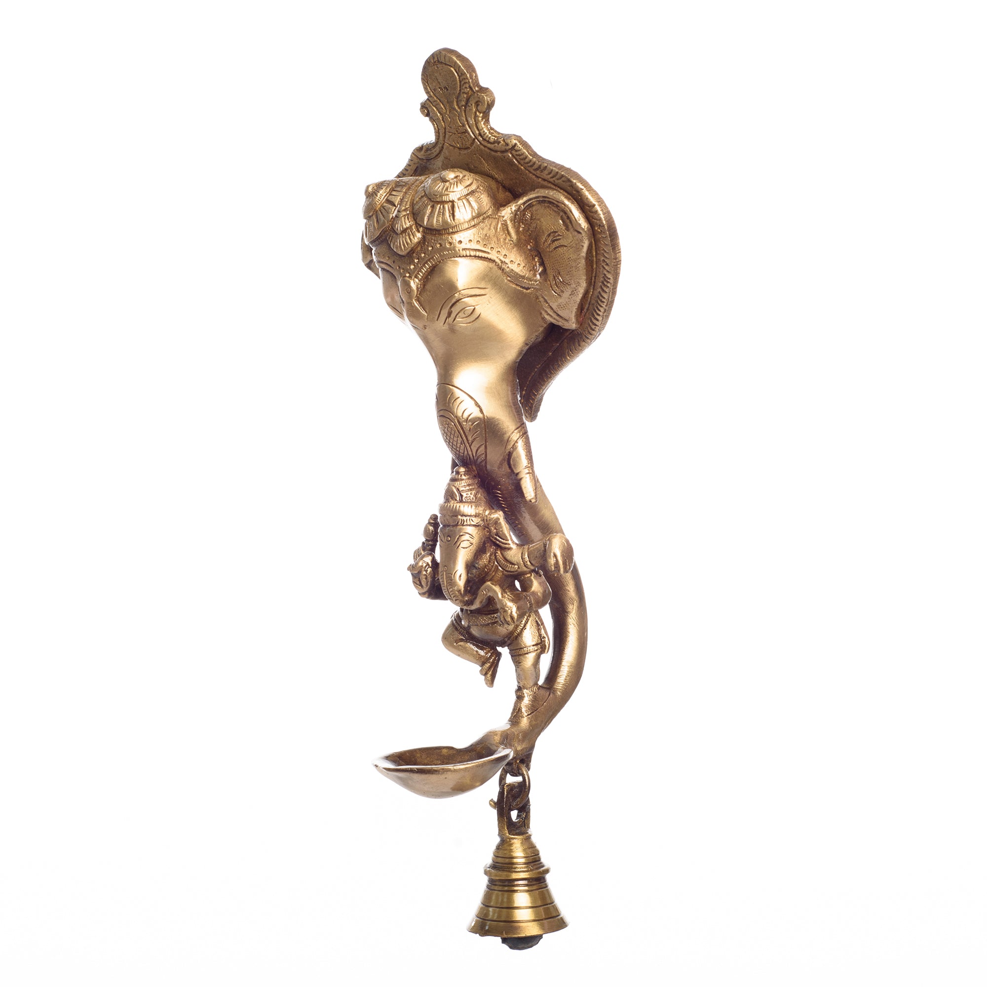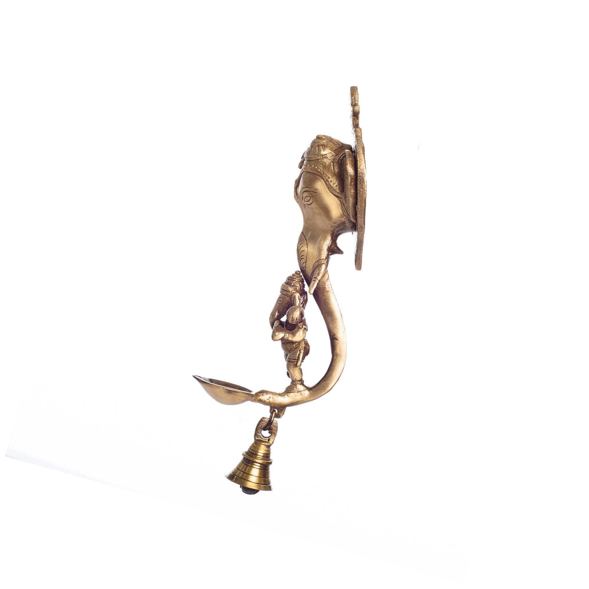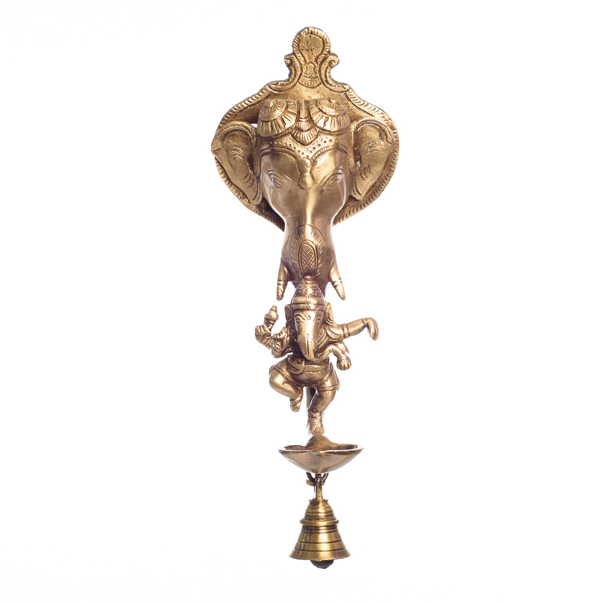 Package Content - One Brass Ganesha wall hanging Deepak with bell and Dancing Ganesha