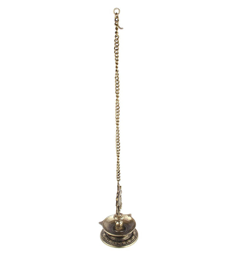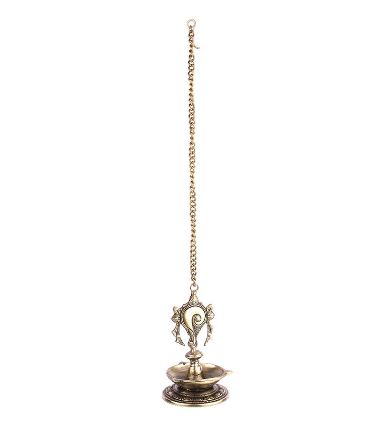 Brass Hanging Shankh Oil Wick Diya - 17 Inch Chain - eCraftIndia Online