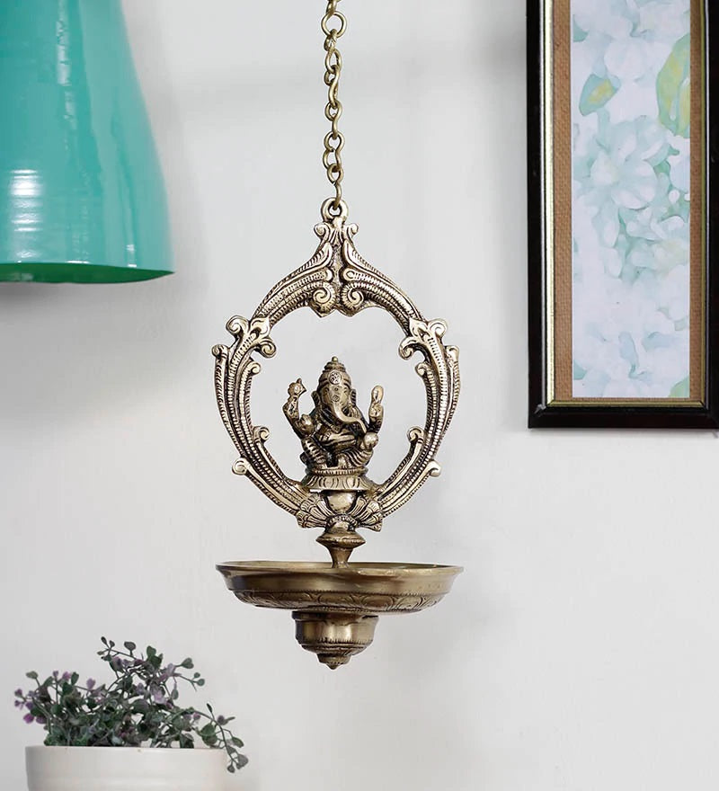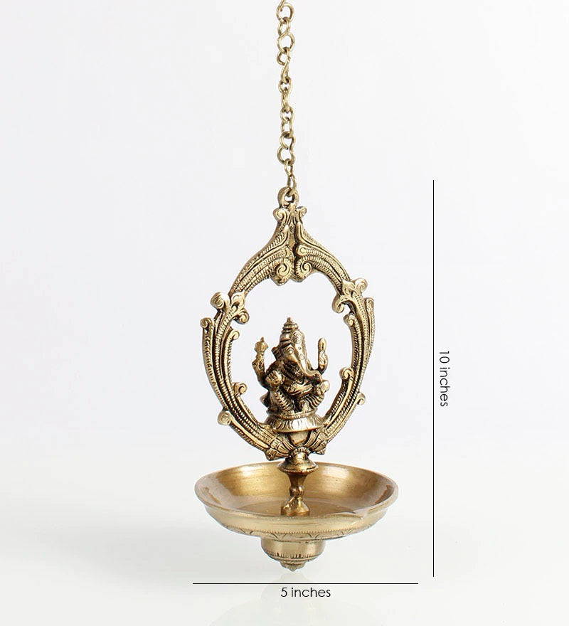Package Content - One Brass Lord Ganesha Hanging Oil Wick Diya - 22Inch Long Chain