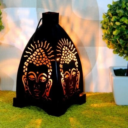 Product Description - Brighten up your dull and boring ambiance with our Buddha Hanging Tea light Holder that is surely going to last an impression on your guests that comes in black and silver color. This shadow tea light holder is made from metal and is a wonderful piece of art that one can hold in their home. It also serves as a great gifting option for your friends as well as your family. These are the best if you wish to have a date night at home and can also be placed in the balcony area. Each tea light holder is handcrafted using inherited methods at the dwelling of eCraftIndia.