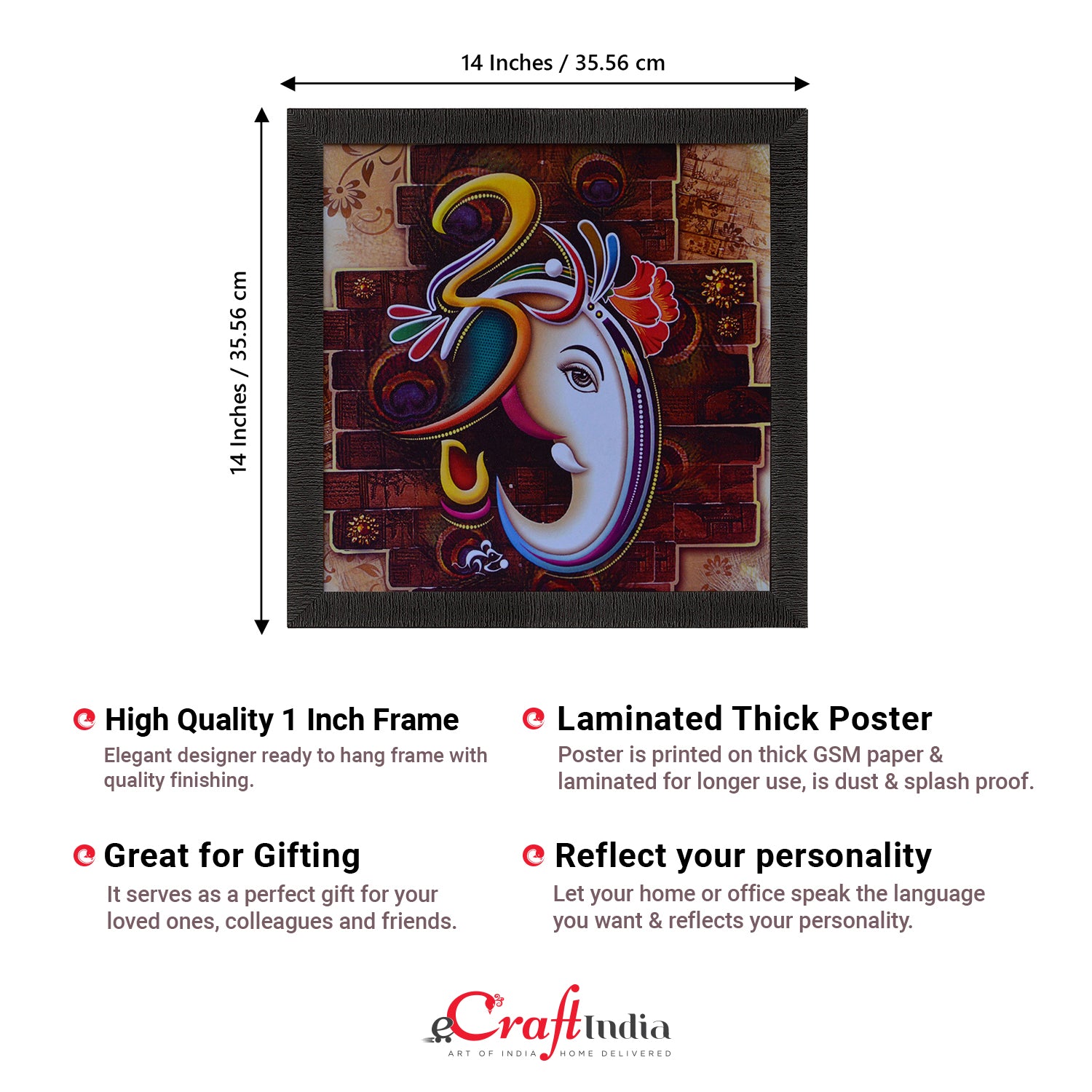 Product Description - Decorate your home & office walls with these artistic design Satin Matt Texture Framed UV Art Painting from eCraftIndia. Each design reflects the artistic qualities and time one has taken to design this painting Exquisitely printed and framed, it is also a perfect gifting option for your colleagues, loved ones and family members. These frames don't include glass so it is very light weight and wet cloth can be used to clean it.