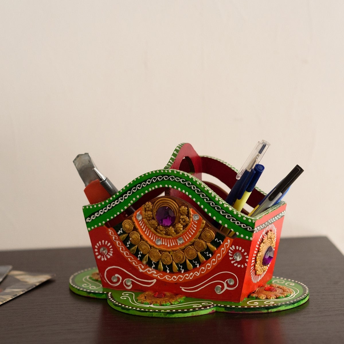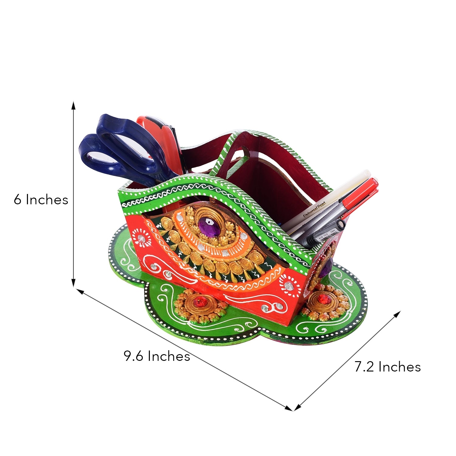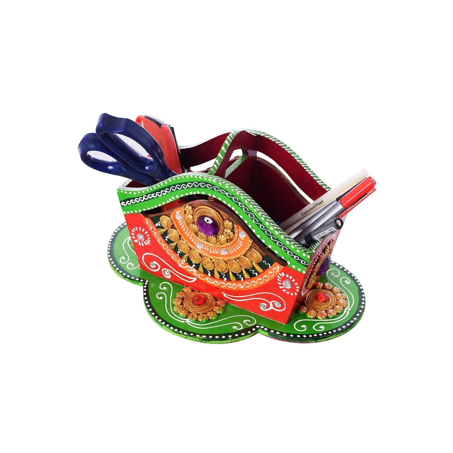 Package Content - 1 Decorative Papier-Mache Wooden Pen Stand