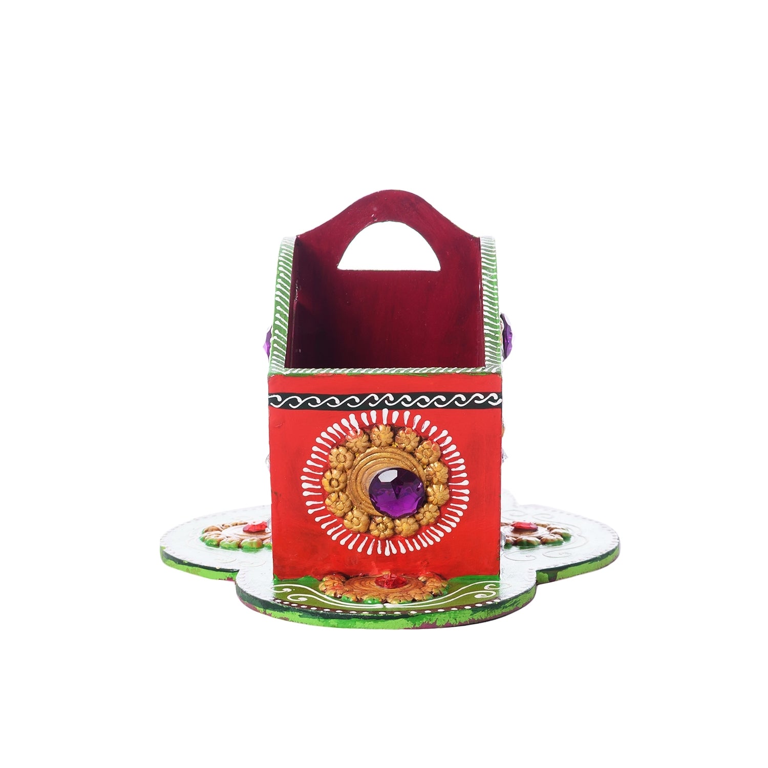 Product Description - Make your work desk, children's desk and computer table look fantastic with this glamorous "Papier-Mache Round Pen Stand" by eCraftIndia. Crafted with Papier-Mache, it is embellished with Meenakari and kundan work that is complemented by expert enamelwork. eCraftIndia pen stands are fantastically crafted with classical designing by our skilled craftsmen giving it a eye catching look. Each piece reflects the artistic qualities and time one has taken to shape these appreciative decors. Exquisitely designed and intricately crafted, it makes for a perfect gifting option.
