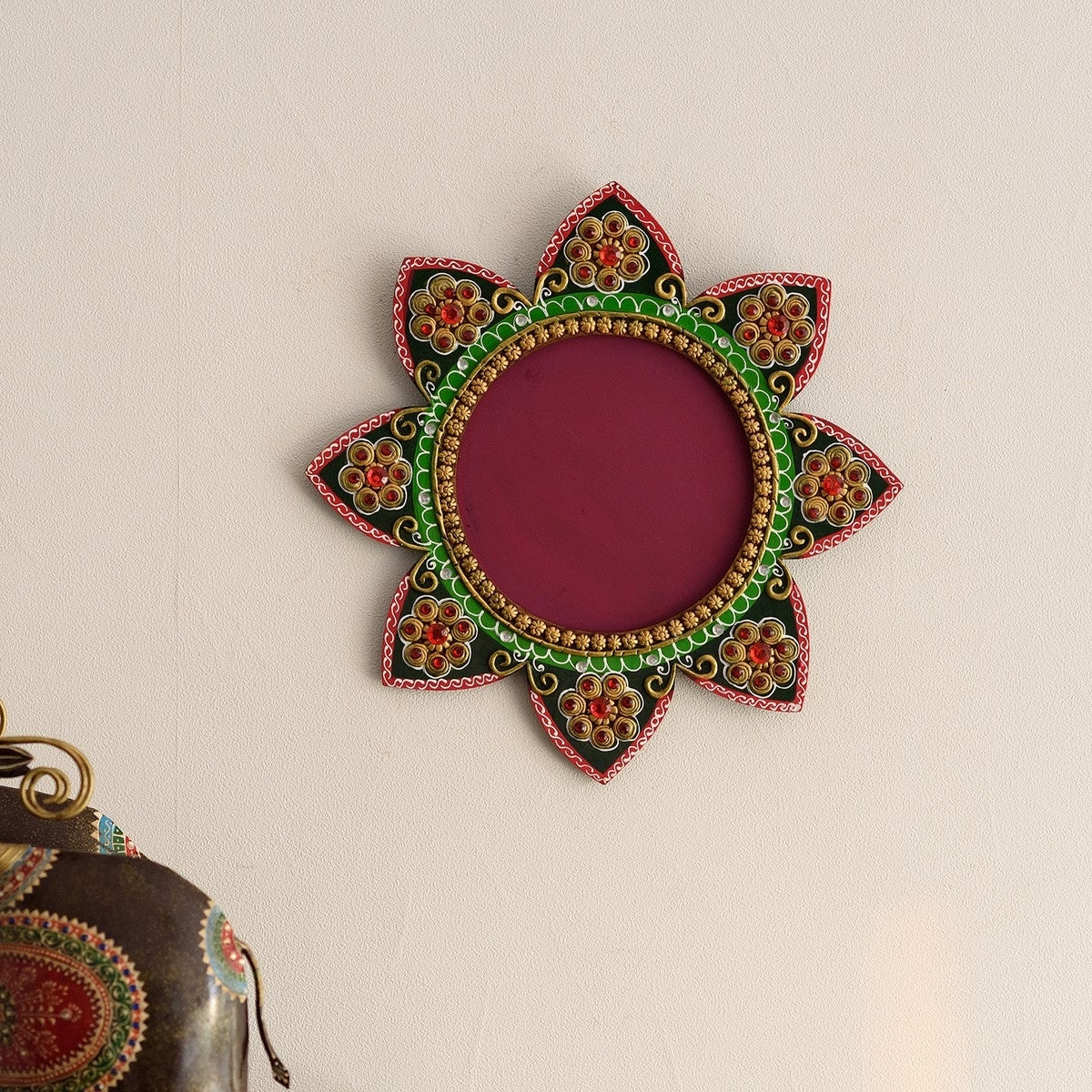 Product Description - Display happy memories and precious moments in this unique and attractive Papier-Mache Photo Frame. Covered by magnificient design, it brings to mind the beauty of Indian art, and is an attractive accent piece for your wall, or a wonderful gift. Its versatile design, Intricate artistry and superlative craftsmanship makes this ideal for unique gift to your loved ones, family and friends. This photo frame is diligently handcrafted by skilled artisans of eCraftIndia using various traditional techniques.