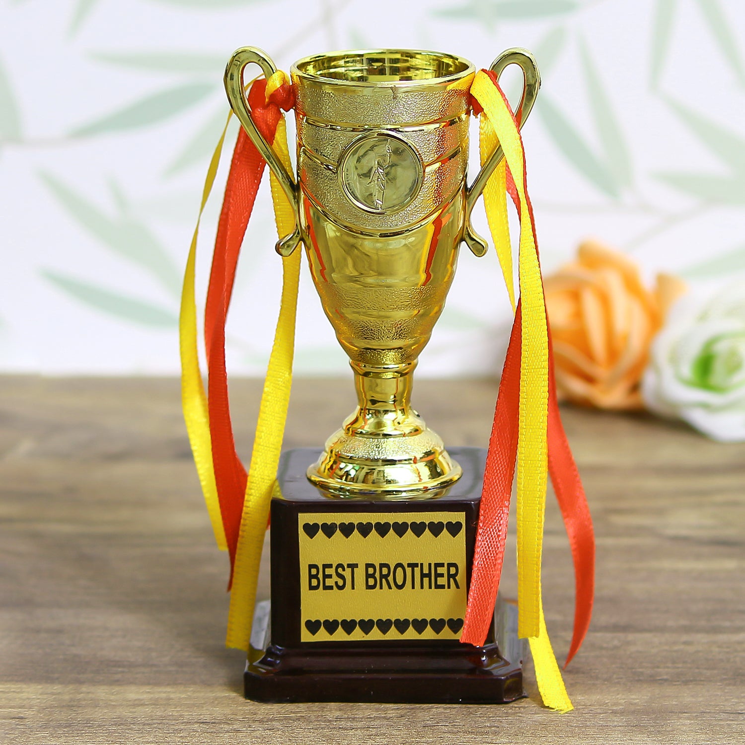 Desginer Rakhi with Best Brother Trophy and Roli Chawal Pack - eCraftIndia Online