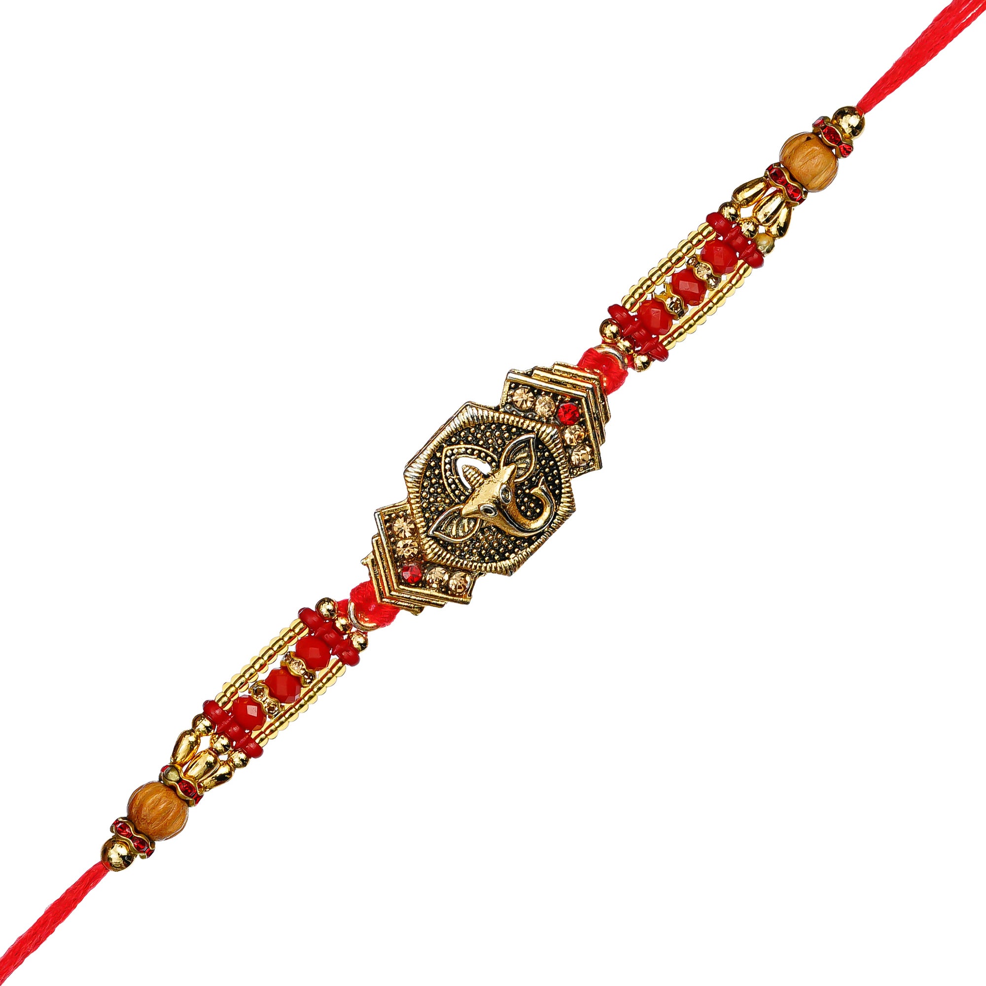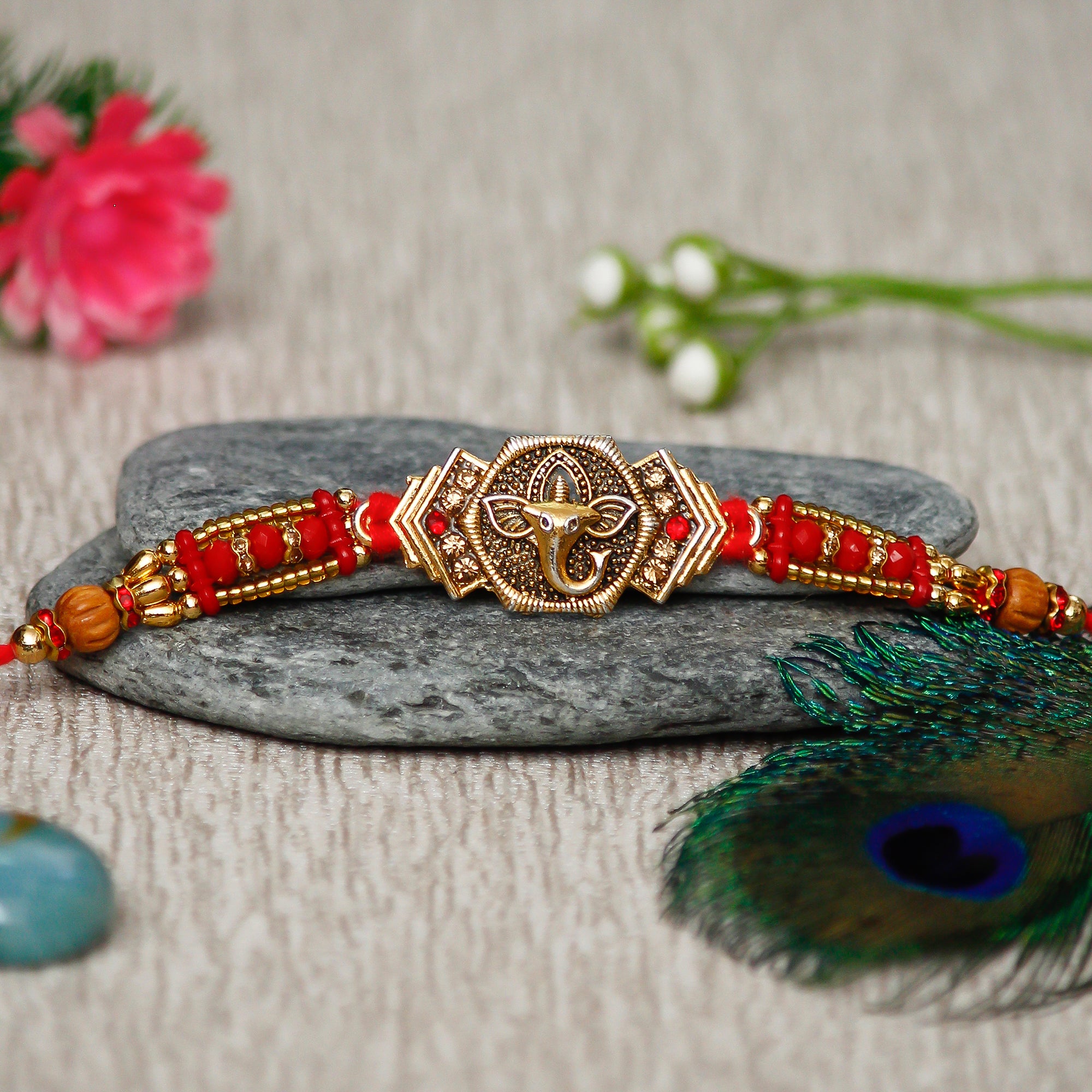 Designer Ganesha Rakhi and Roli Chawal Pack, Best Wishes Greeting Card - eCraftIndia Online