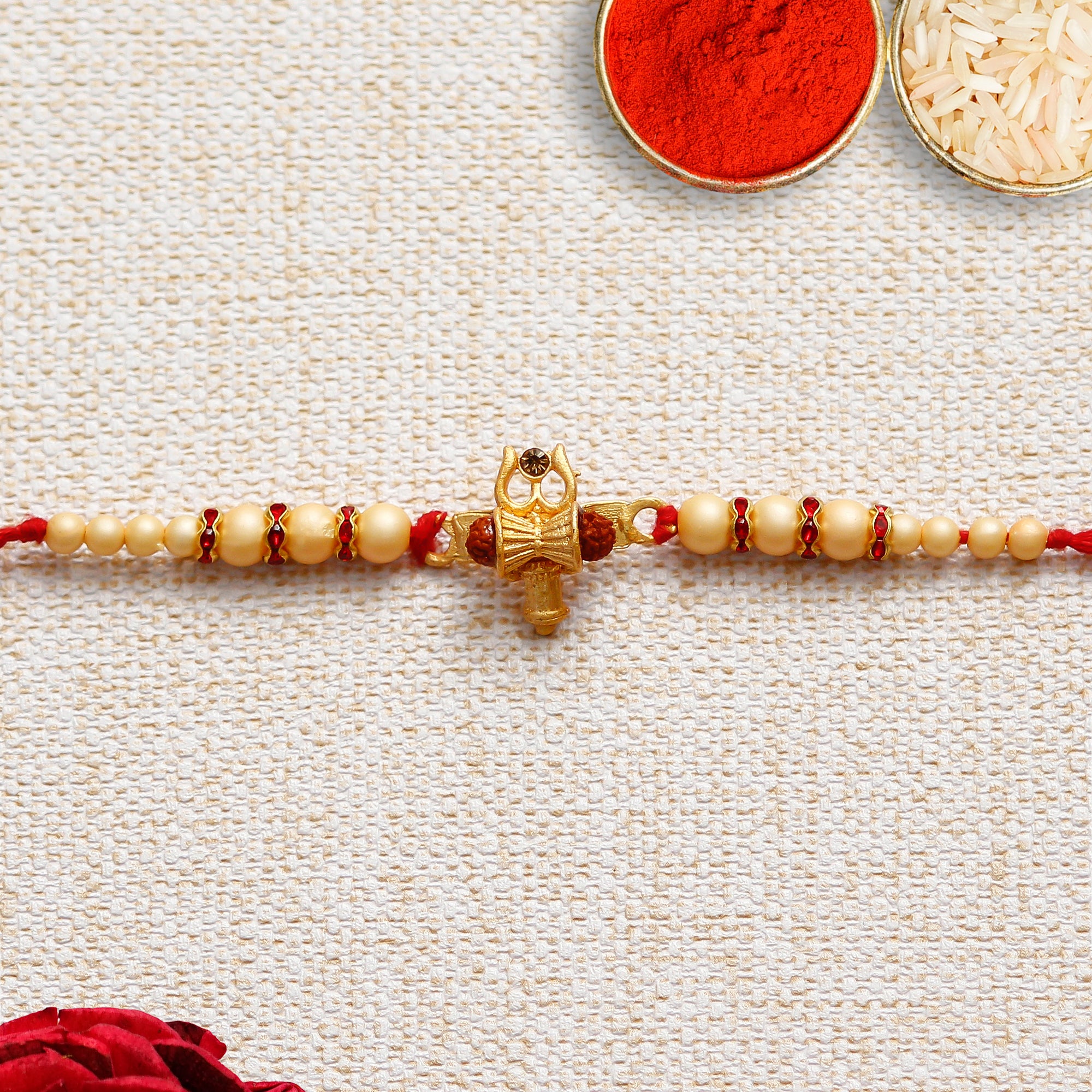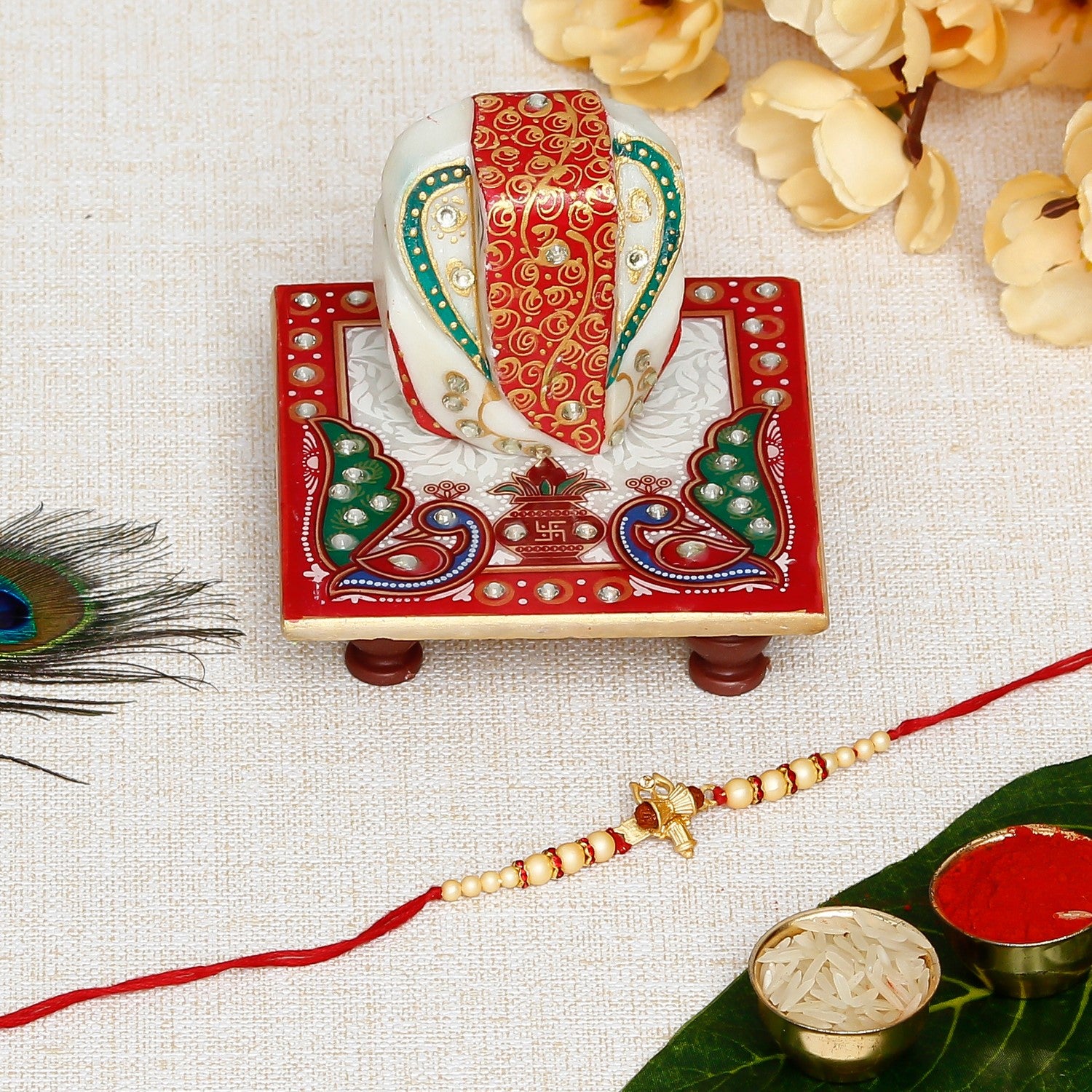 Designer Ganesha Rakhi with Lord Ganesha on Marble Chowki and Roli Chawal Pack - eCraftIndia Online