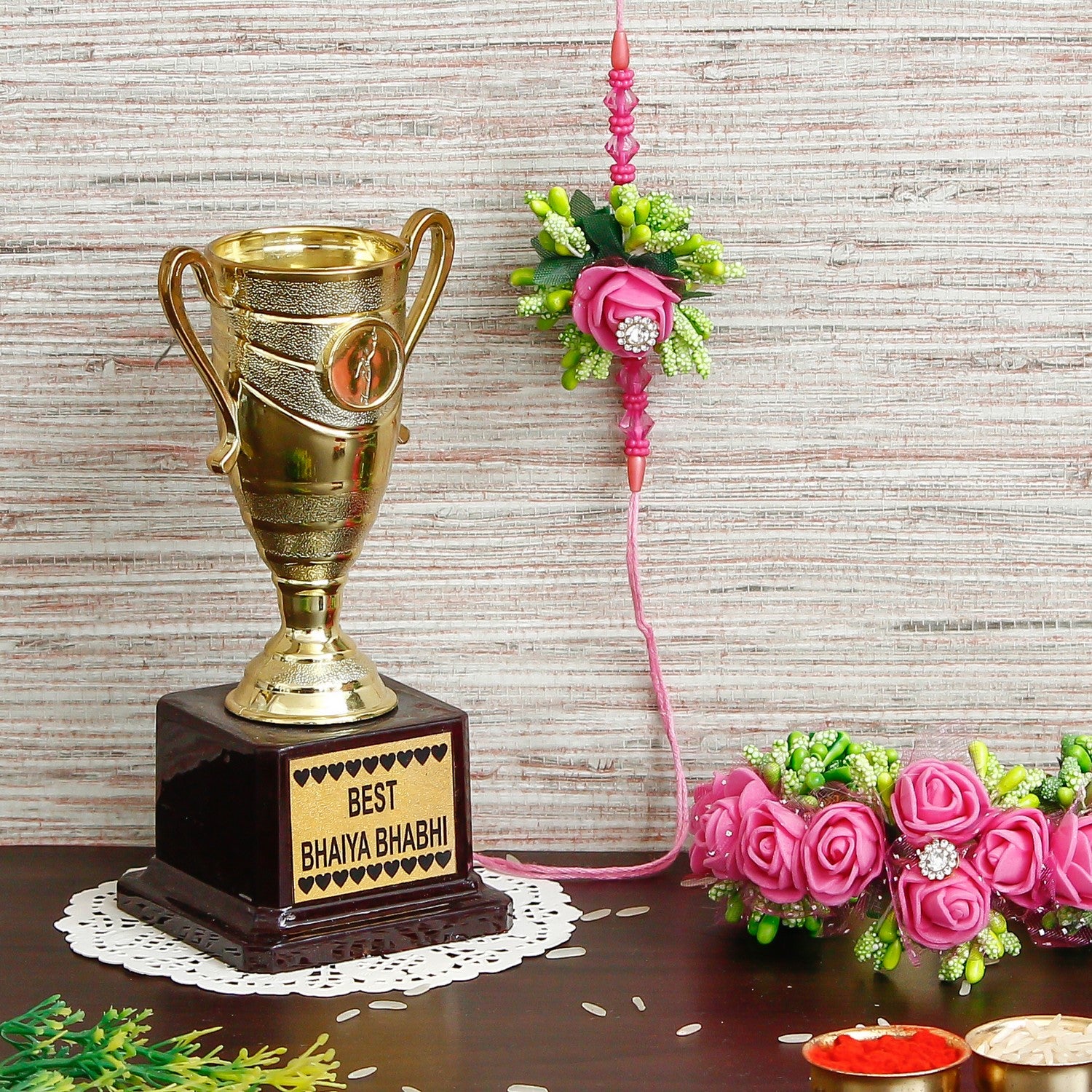 Designer Handcrafted Premium Bhaiya Bhabhi Rakhi with Best Bhaiya Bhabhi Trophy and Roli Chawal Pack