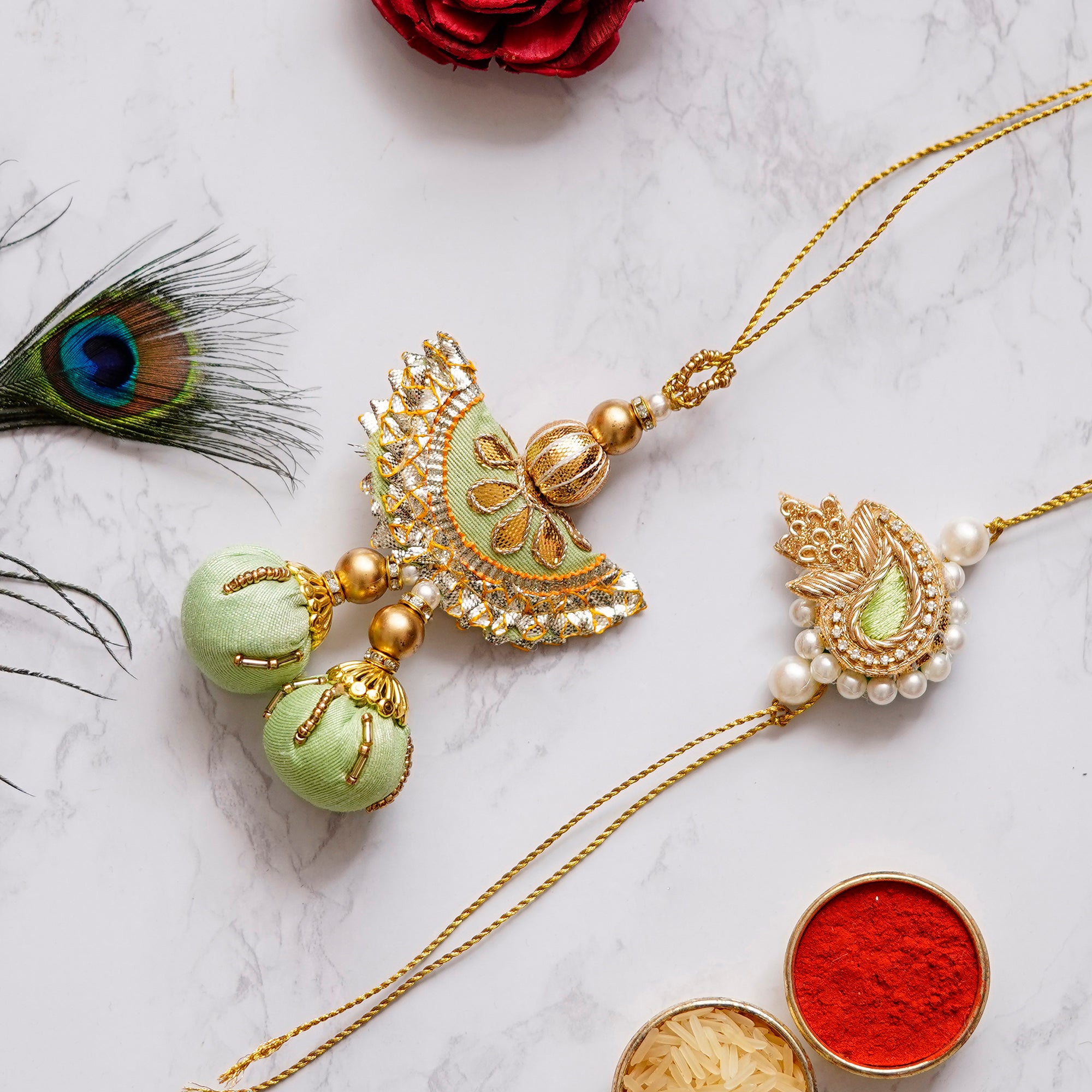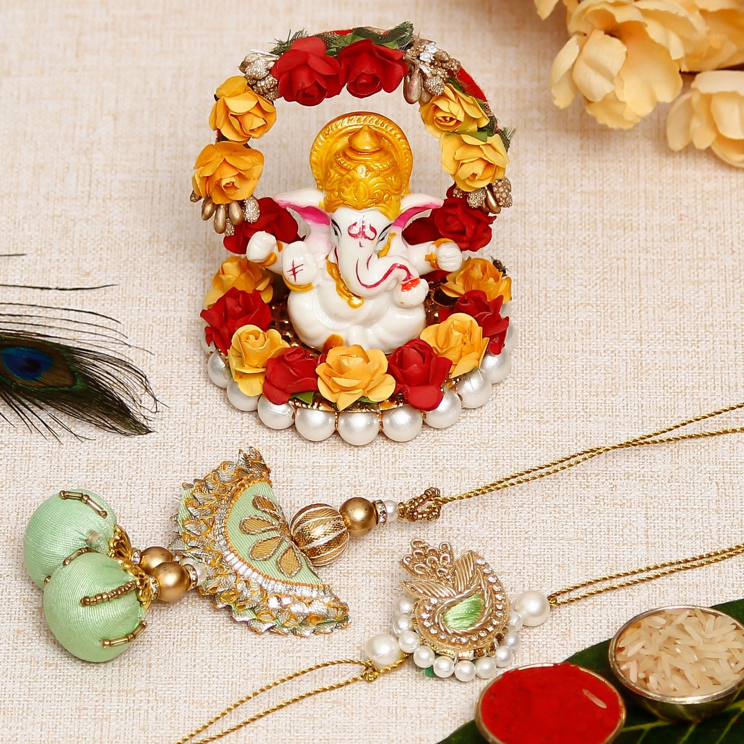Designer Handcrafted Premium Bhaiya Bhabhi Rakhi with Lord Ganesha Idol on Decorative Plate for Car & Home and Roli Chawal Pack - eCraftIndia Online