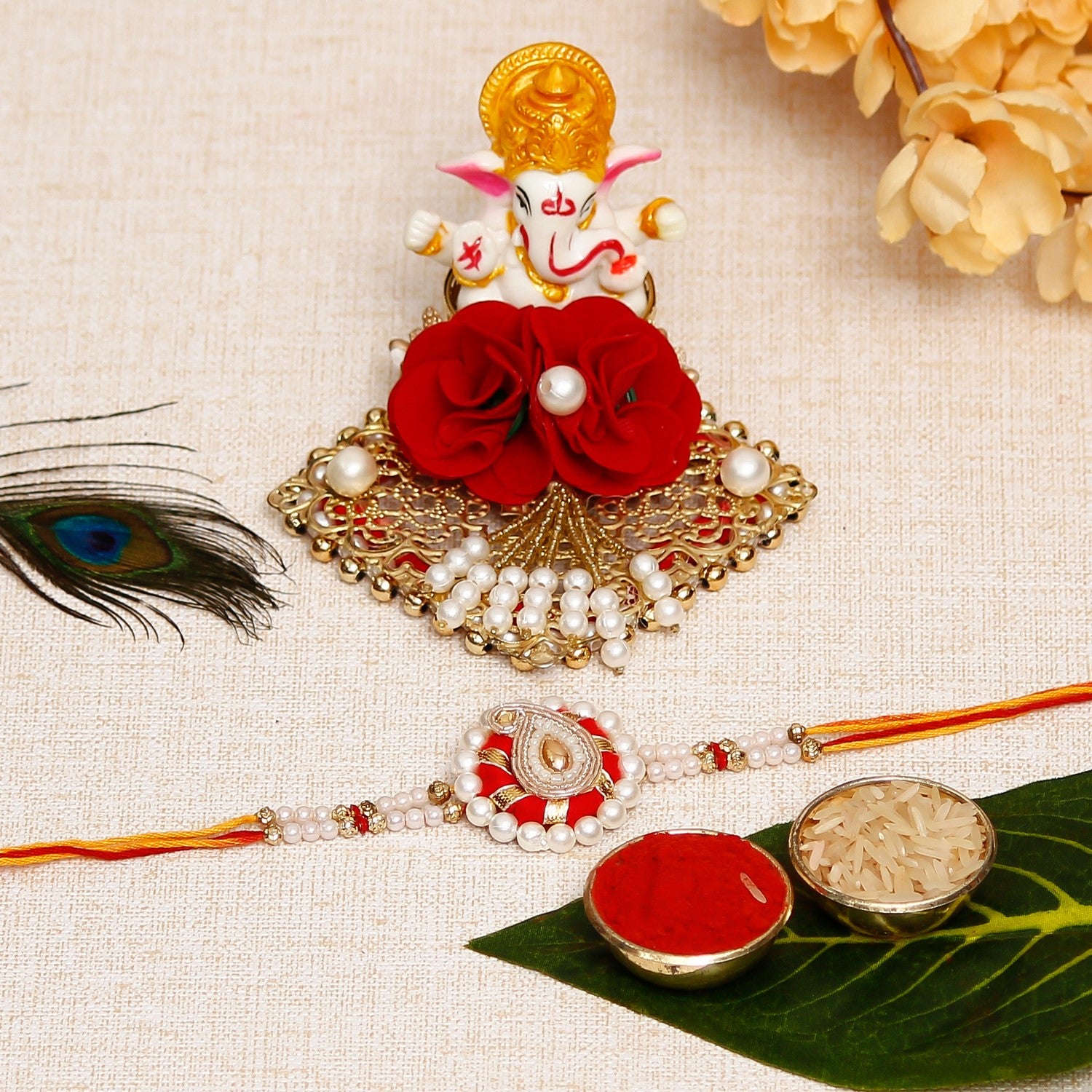 Designer Handcrafted Rakhi with Lord Ganesha Idol on Decorative Plate for Car & Home and Roli Chawal Pack - eCraftIndia Online