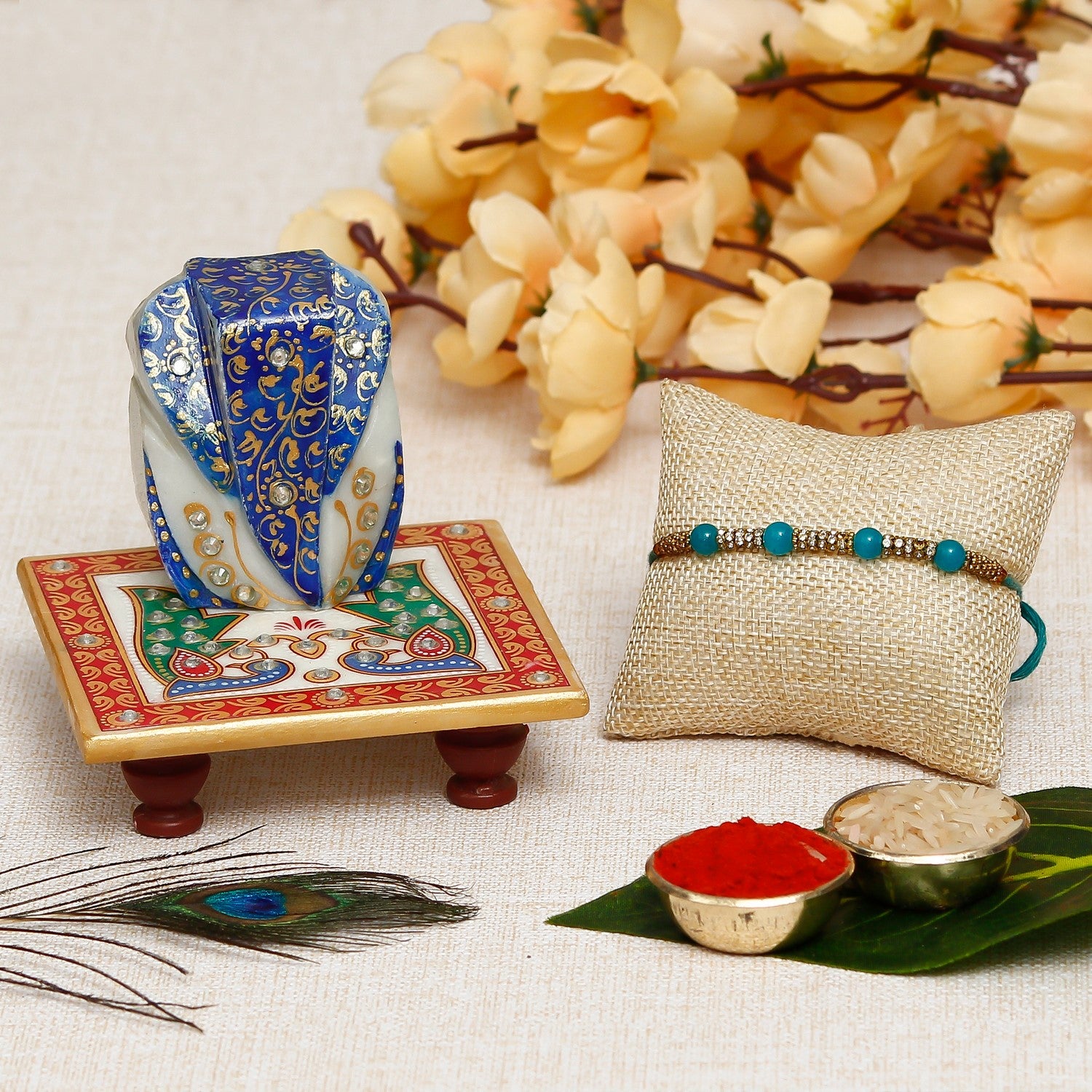 Designer Pearl Rakhi with Lord Ganesha on Marble Chowki and Roli Chawal Pack