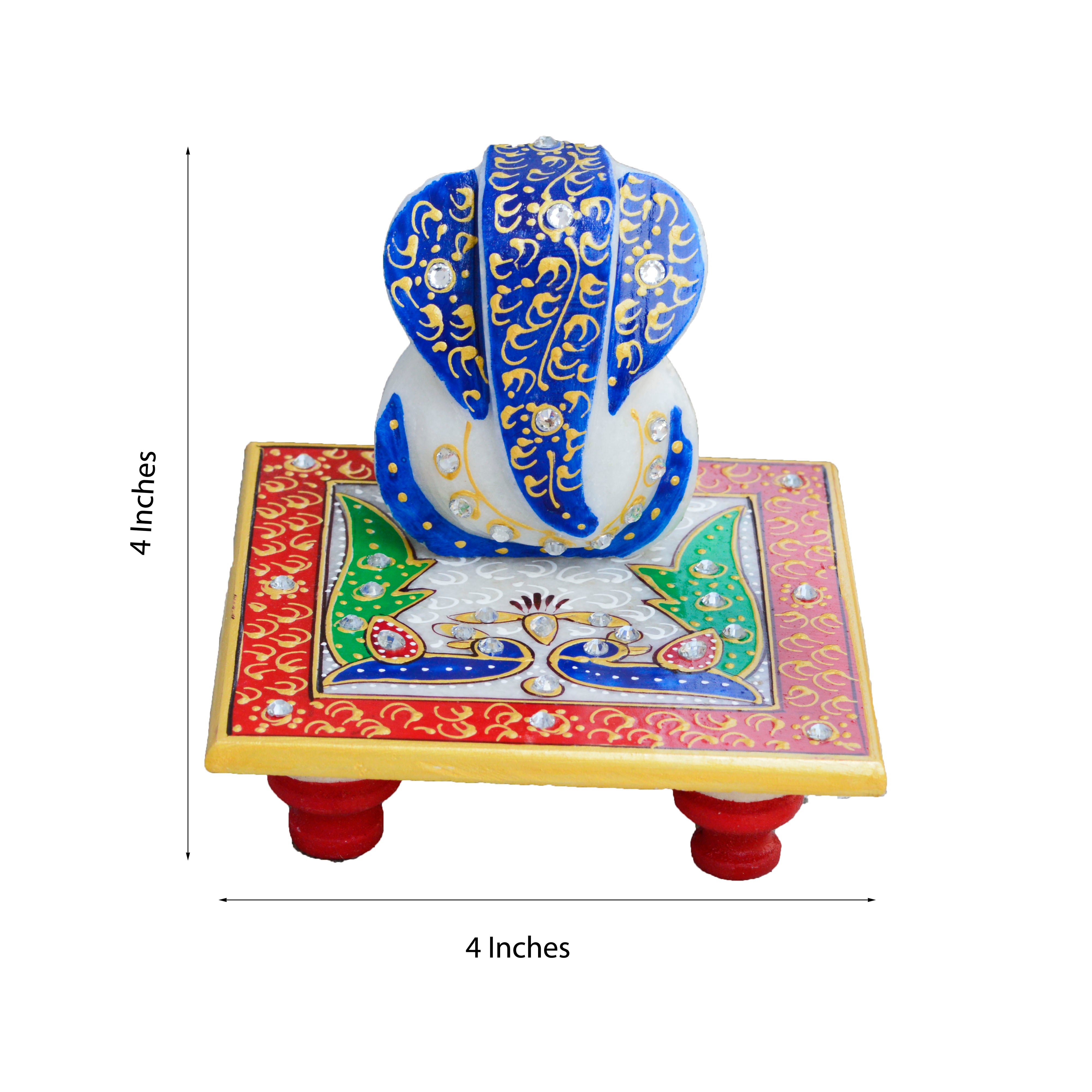 Designer Pearl Rakhi with Lord Ganesha on Marble Chowki and Roli Chawal Pack - eCraftIndia Online
