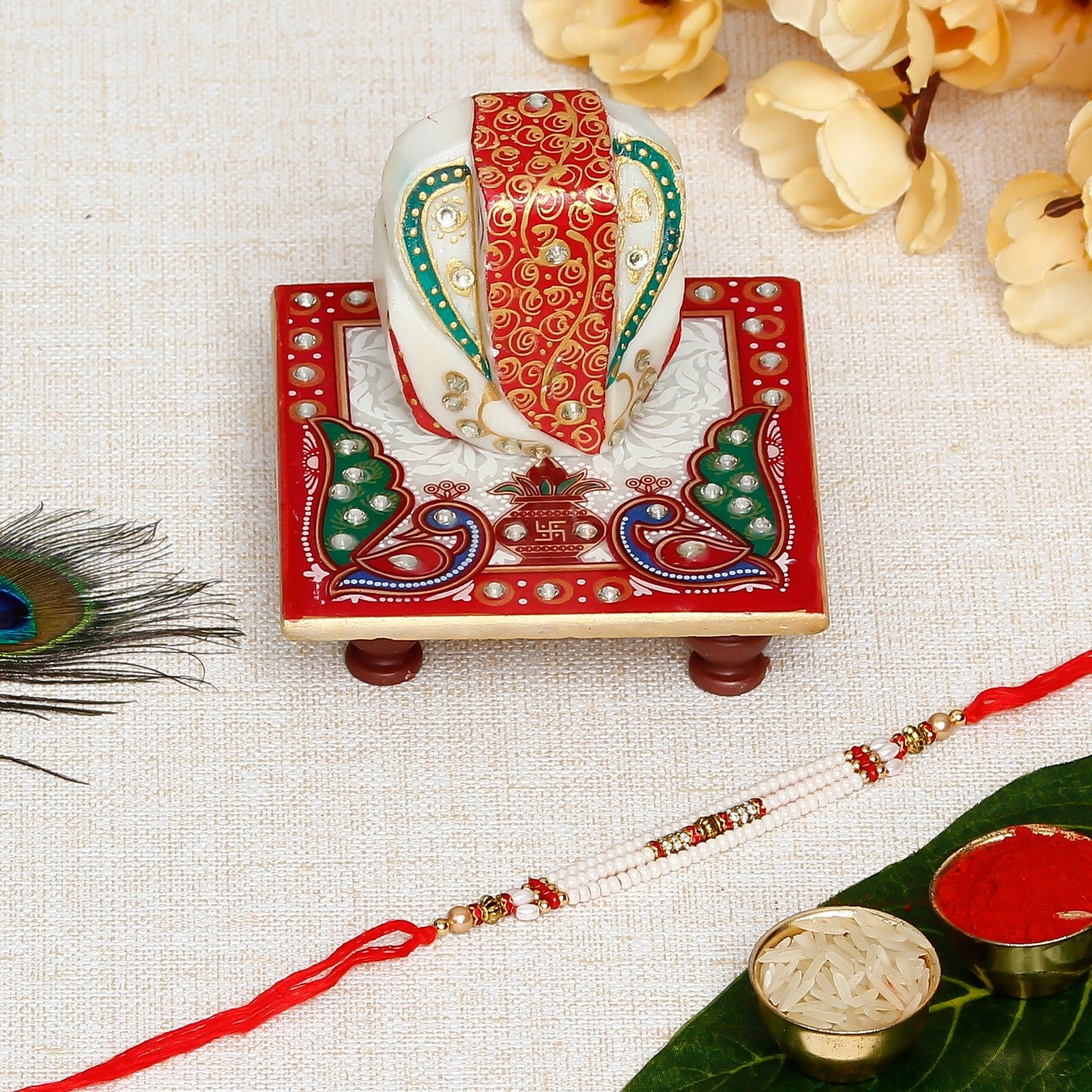 Designer Rakhi with Lord Ganesha on Marble Chowki and Roli Chawal Pack