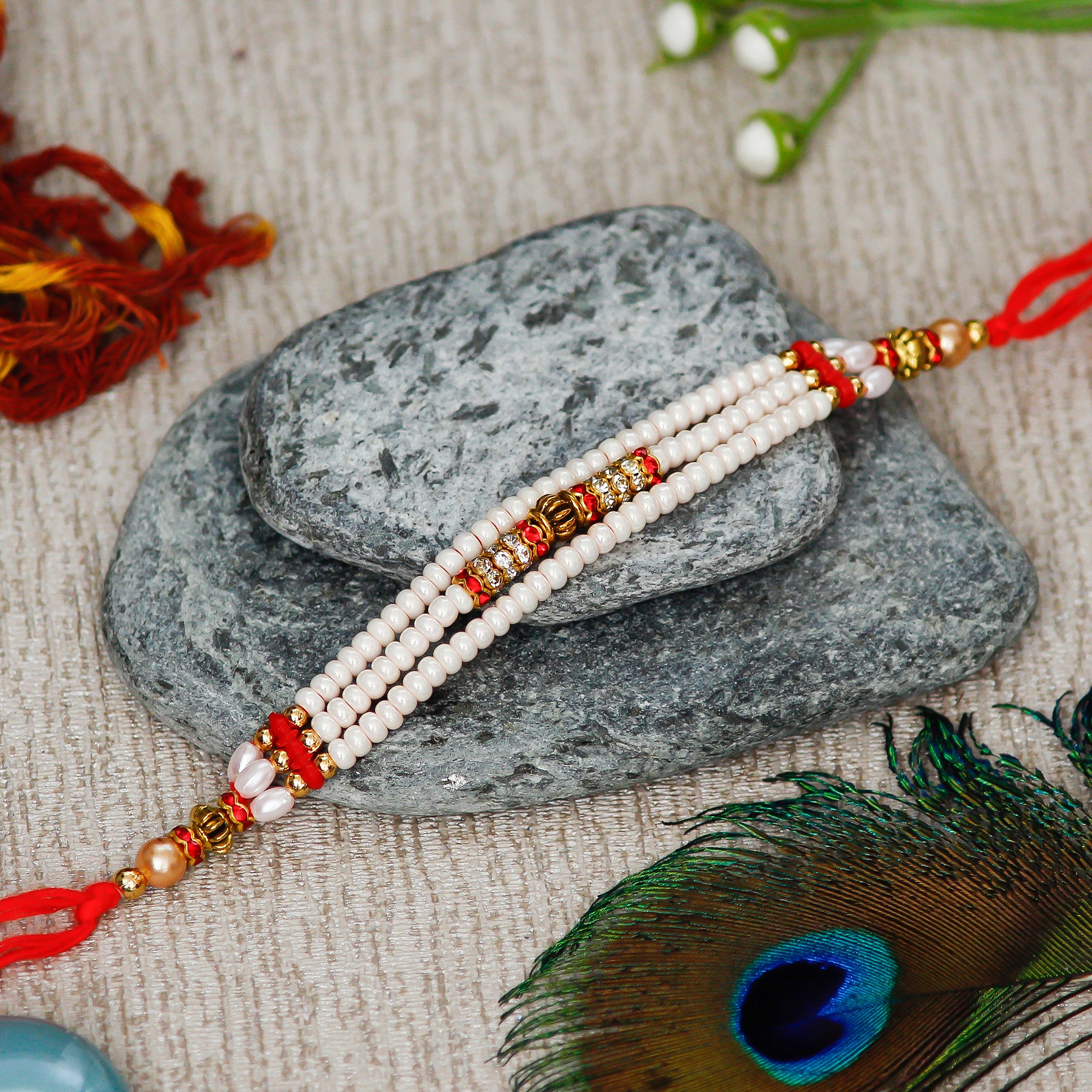 Designer Rakhi with Lord Ganesha on Marble Chowki and Roli Chawal Pack - eCraftIndia Online