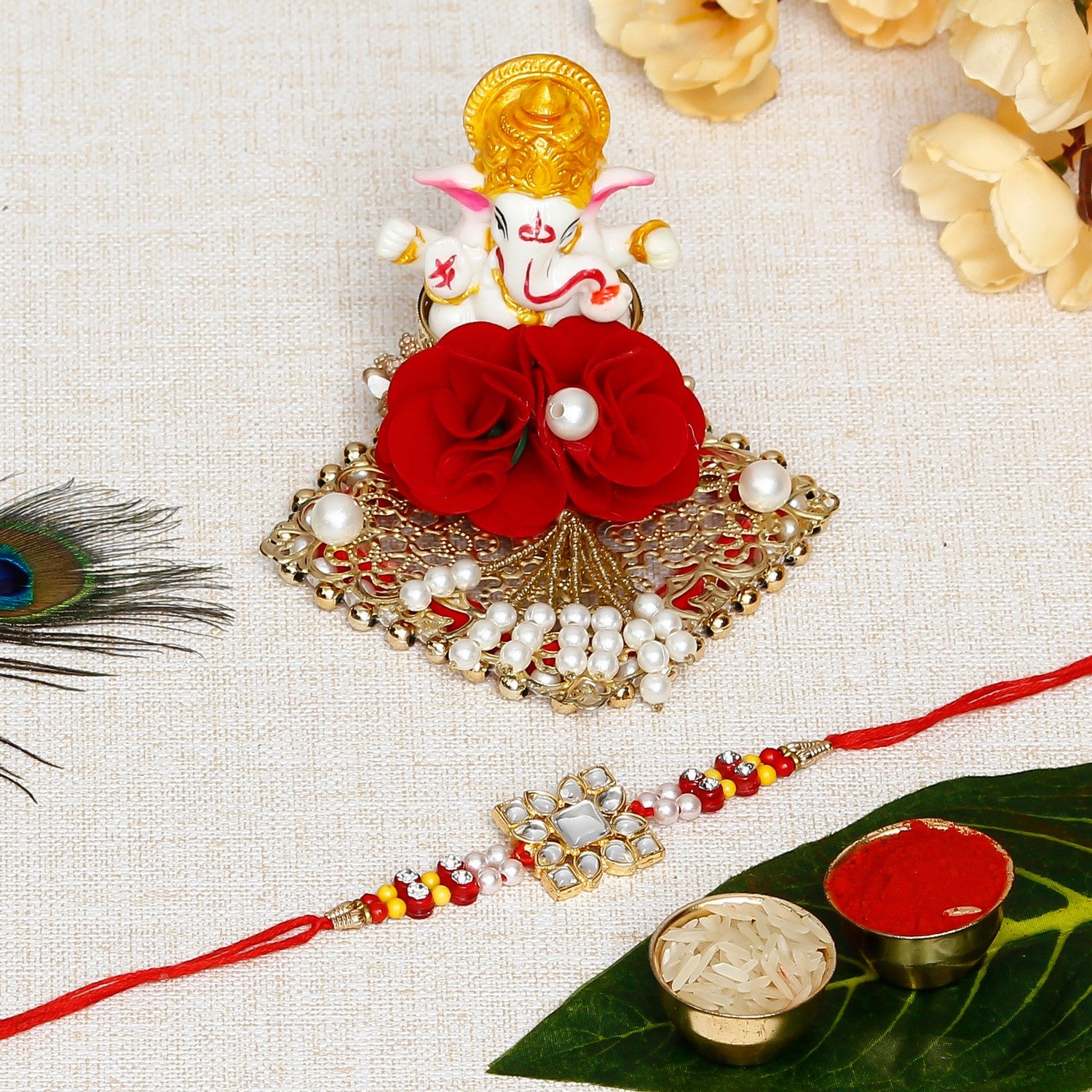 Designer Stone Work Rakhi with Lord Ganesha Idol on Decorative Plate for Car & Home and Roli Chawal Pack - eCraftIndia Online