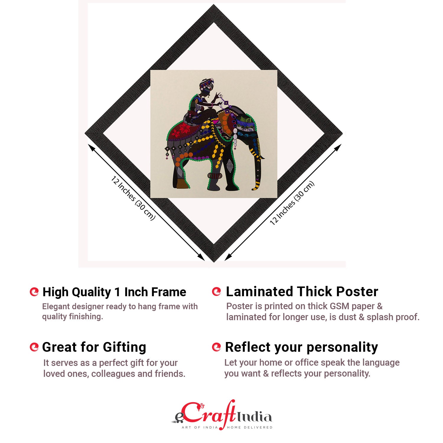 Product Description - Decorate your home & office walls with these artistic design Satin Matt Texture Framed UV Art Painting from eCraftIndia. Each design reflects the artistic qualities and time one has taken to design this painting Exquisitely printed and framed, it is also a perfect gifting option for your colleagues, loved ones and family members. These frames don't include glass so it is very light weight and wet cloth can be used to clean it.