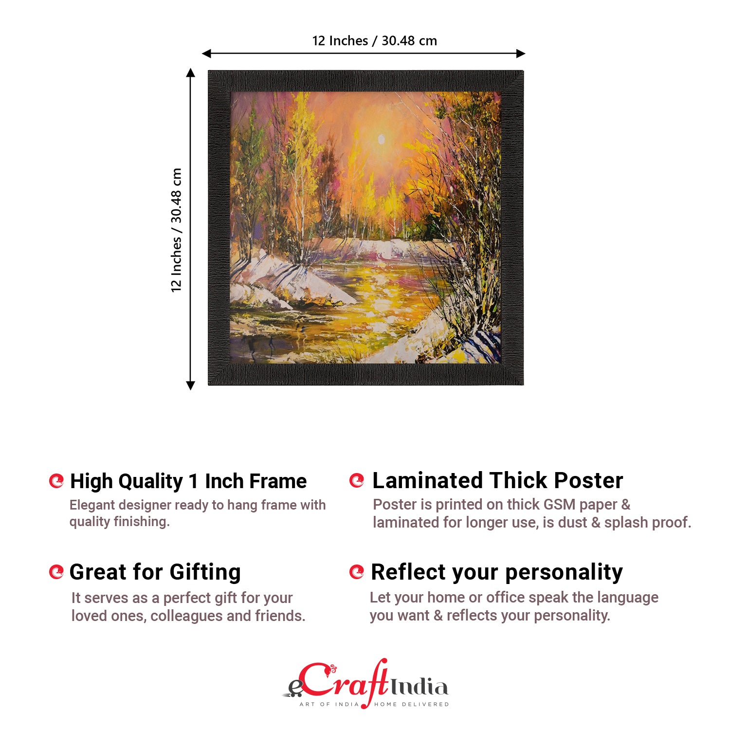 Product Description - Decorate your home & office walls with these artistic design Satin Matt Texture Framed UV Art Painting from eCraftIndia. Each design reflects the artistic qualities and time one has taken to design this painting Exquisitely printed and framed, it is also a perfect gifting option for your colleagues, loved ones and family members. These frames don't include glass so it is very light weight and wet cloth can be used to clean it.