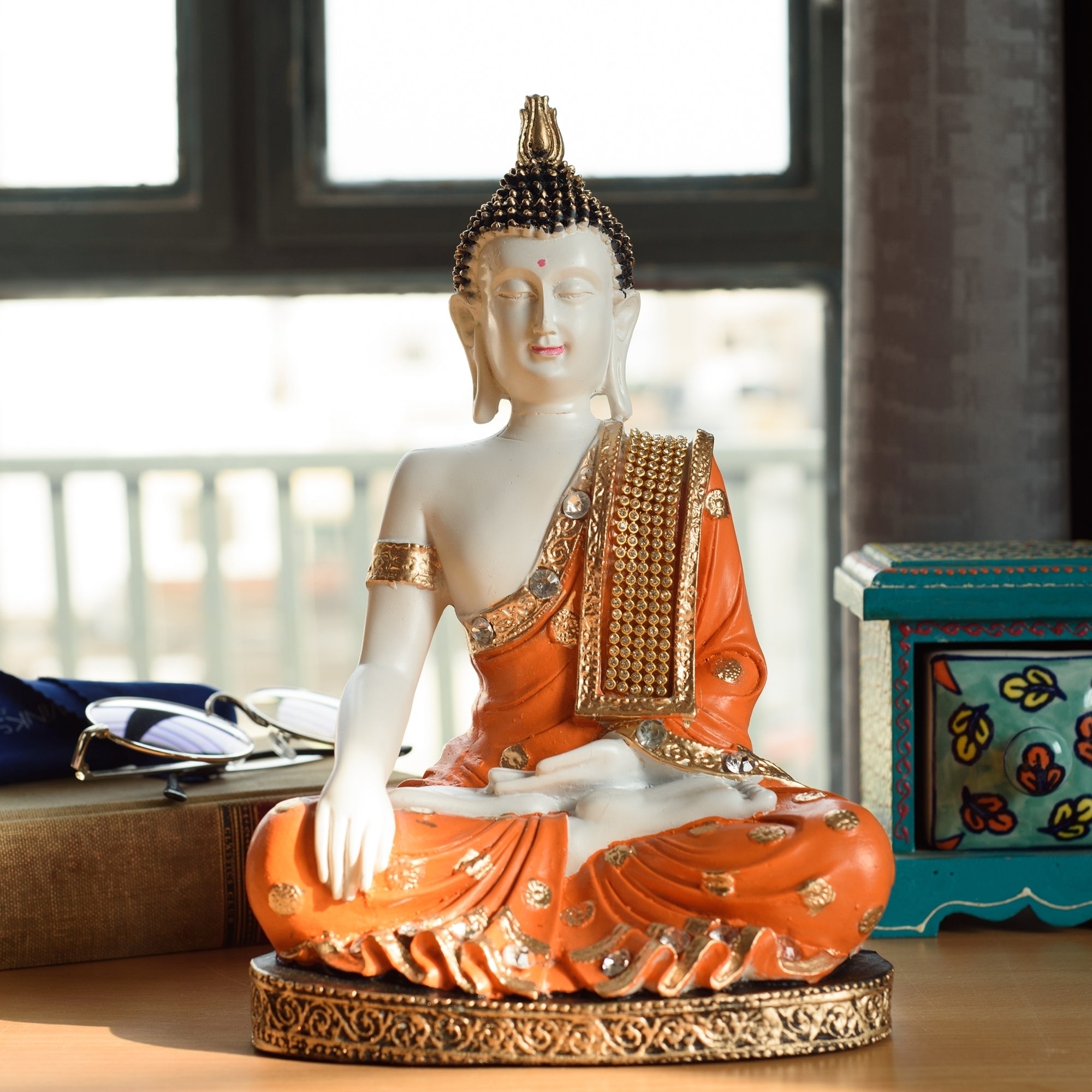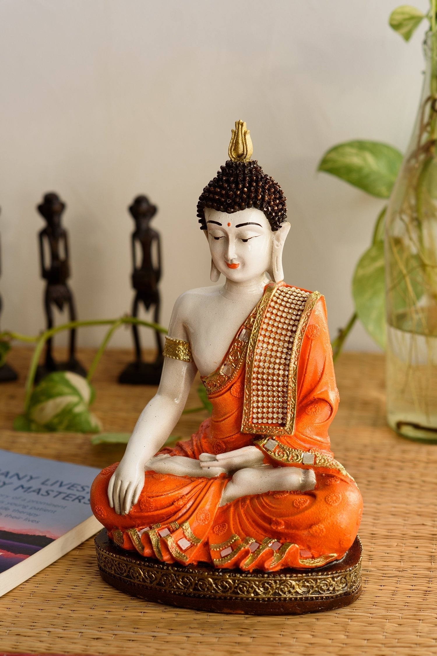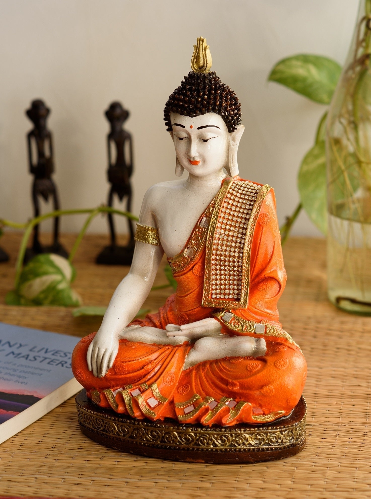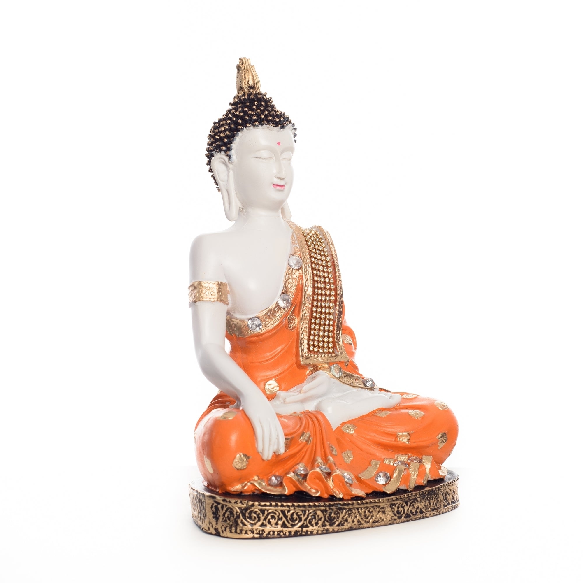 Product Description - Idols of God bring prosperity and success to a home. Adorning your home place with God's idols and figurines has been there for ages now and continues to be there. Everyone wishes to hold God's idols in their home especially Lord Buddha as it is said to bring positive energy, spirituality, and good vibes. And you can bring the same spirituality to your home with eCraftIndia's orange & white Meditating Buddha Statue that arrives in orange color. This showpiece is handcrafted intricately by our skilled artisans. You can find many more Lord Buddha figurines in different avatars on our online portal in various colors that suit your home or office interior. You can gift this to your friends and family at various religious events.