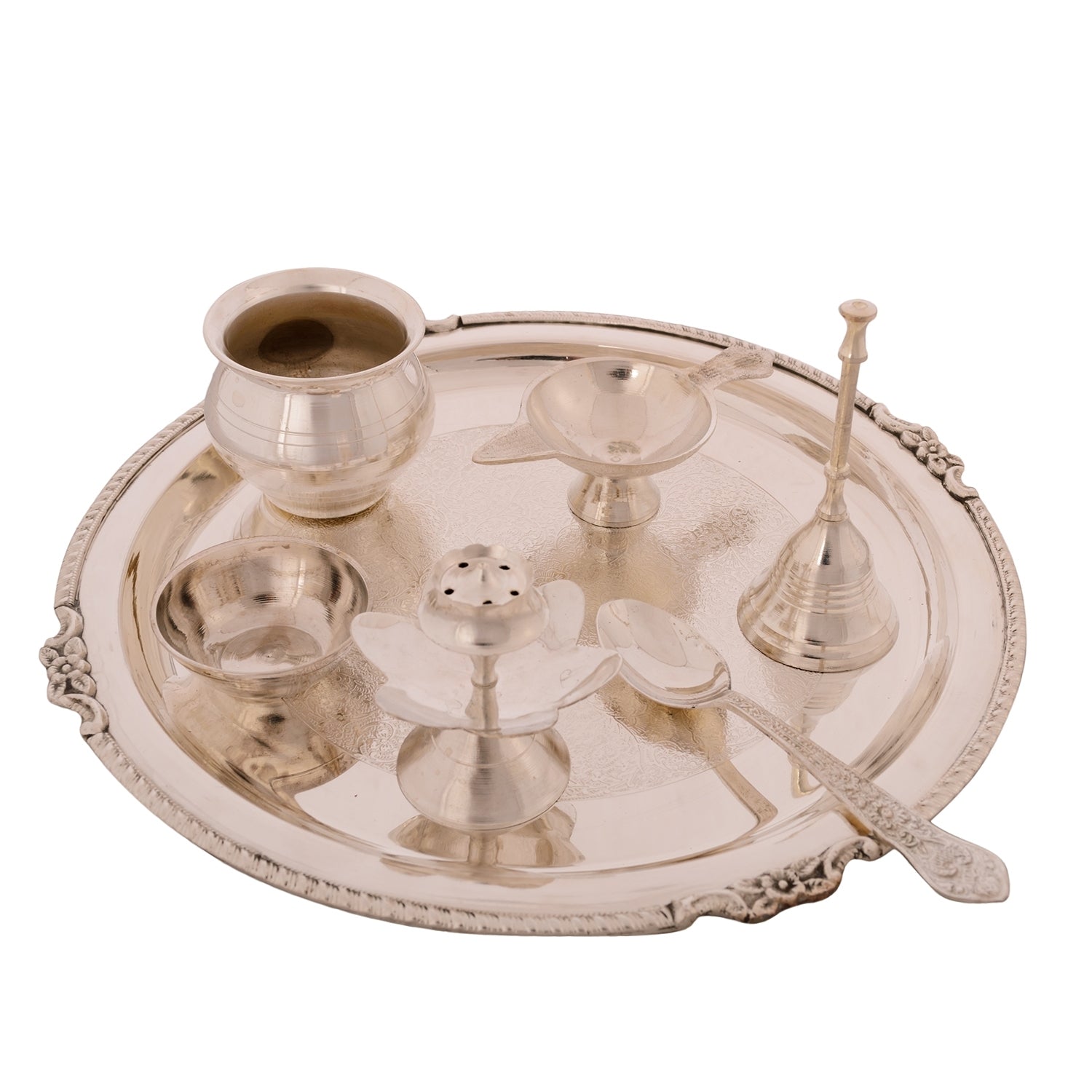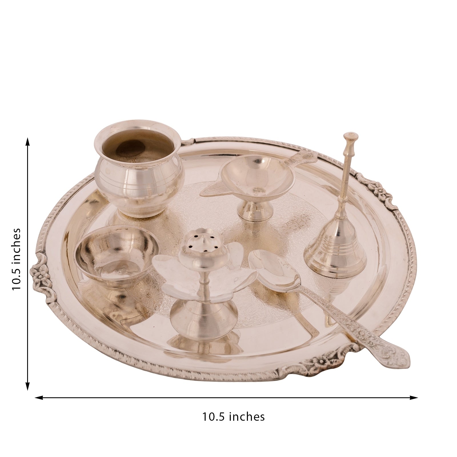 Package Content - One German Silver Elegant Pooja Thali with Velvet Box