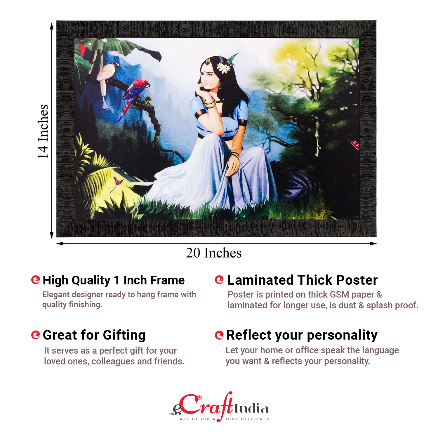 Product Description - Decorate your home & office walls with these artistic design Satin Matt Texture Framed UV Art Painting from eCraftIndia. Each design reflects the artistic qualities and time one has taken to design this painting Exquisitely printed and framed, it is also a perfect gifting option for your colleagues, loved ones and family members. These frames don't include glass so it is very light weight and wet cloth can be used to clean it.