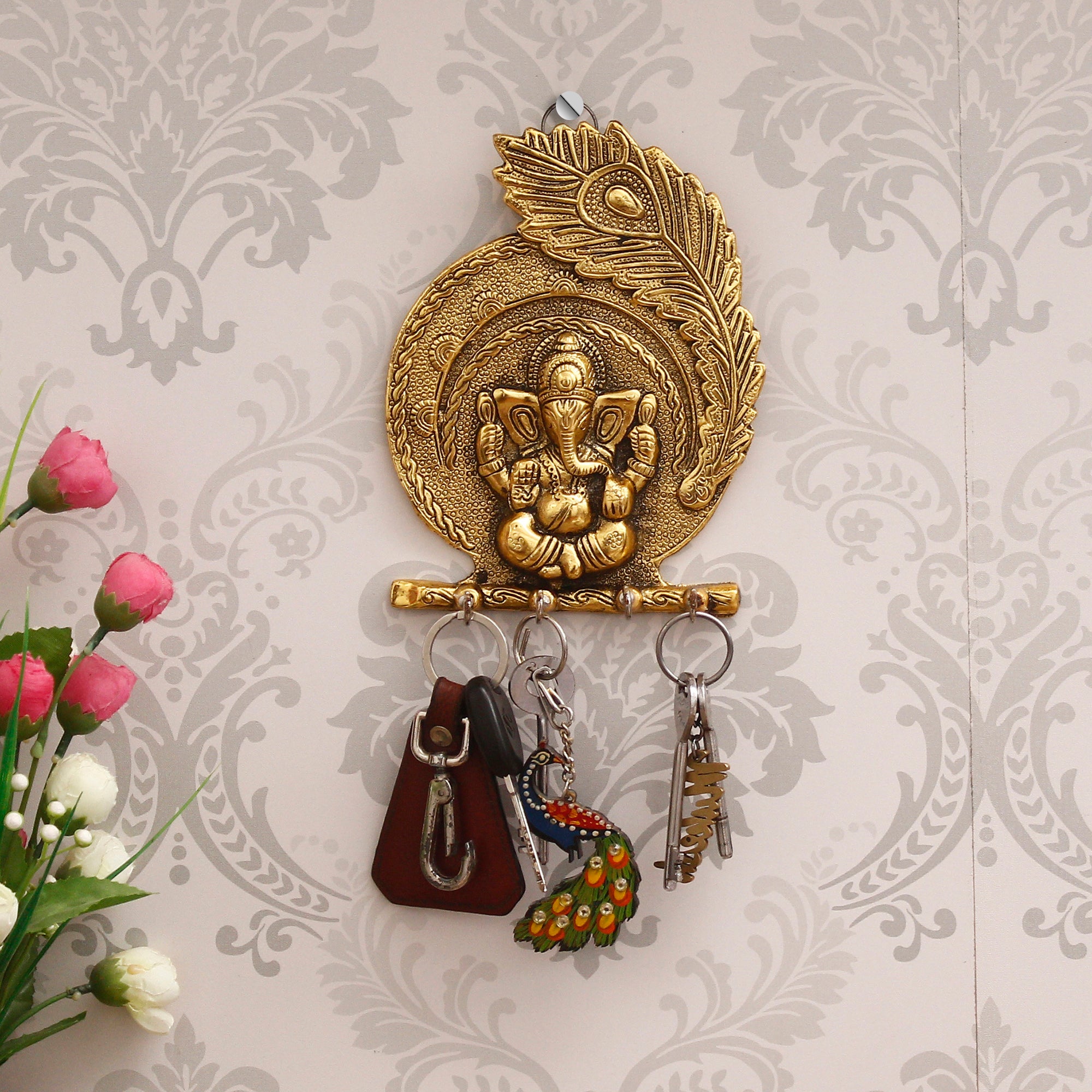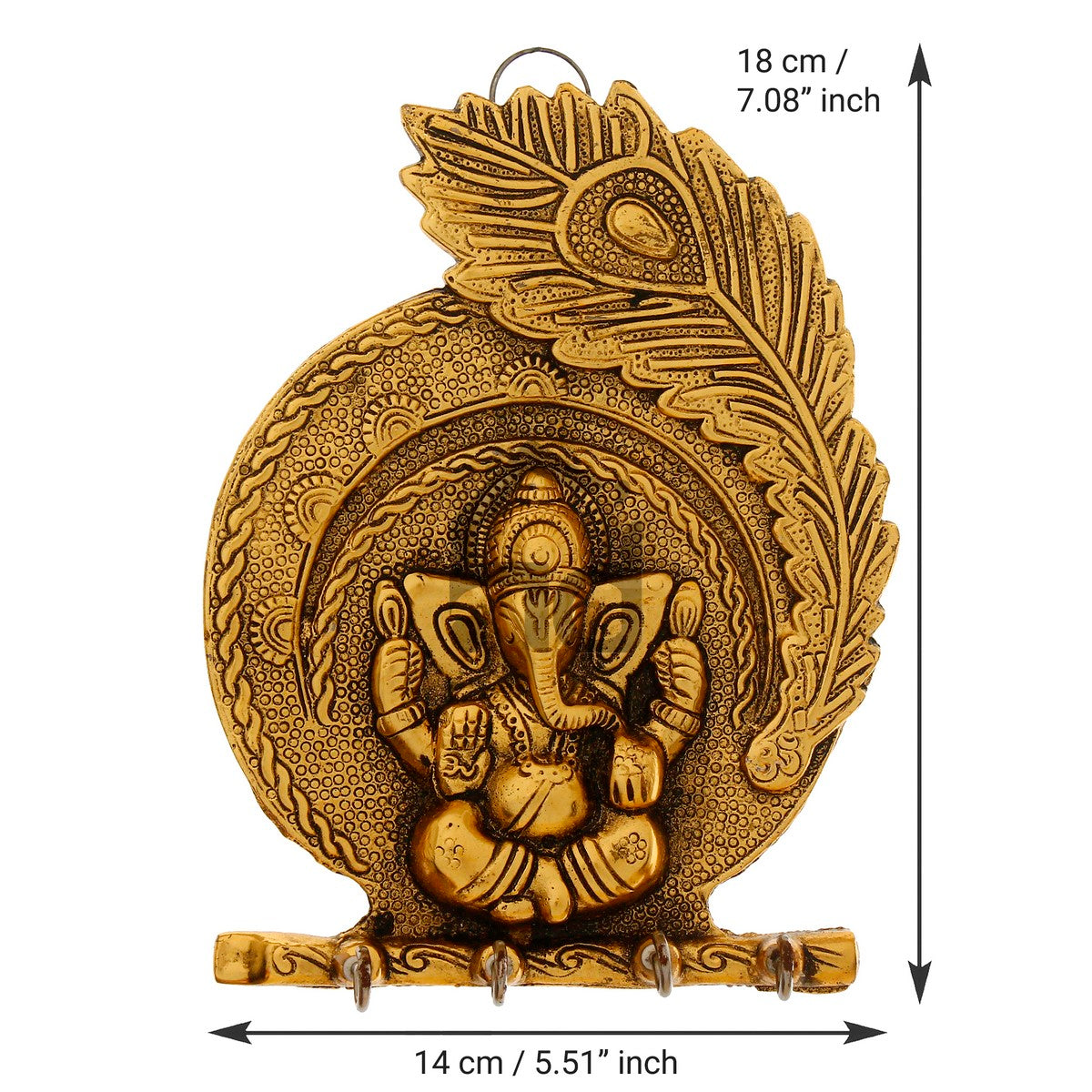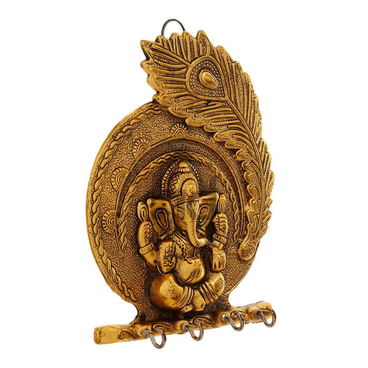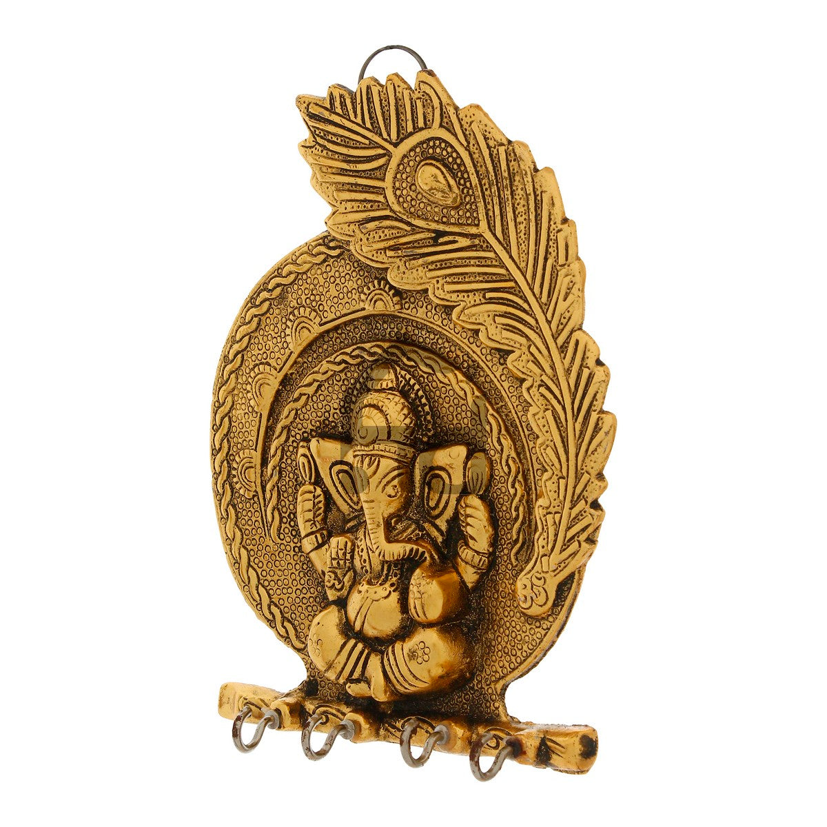 Package Content - One Golden Lord Ganesha Mor Pankh 4 Hooks Key Holder