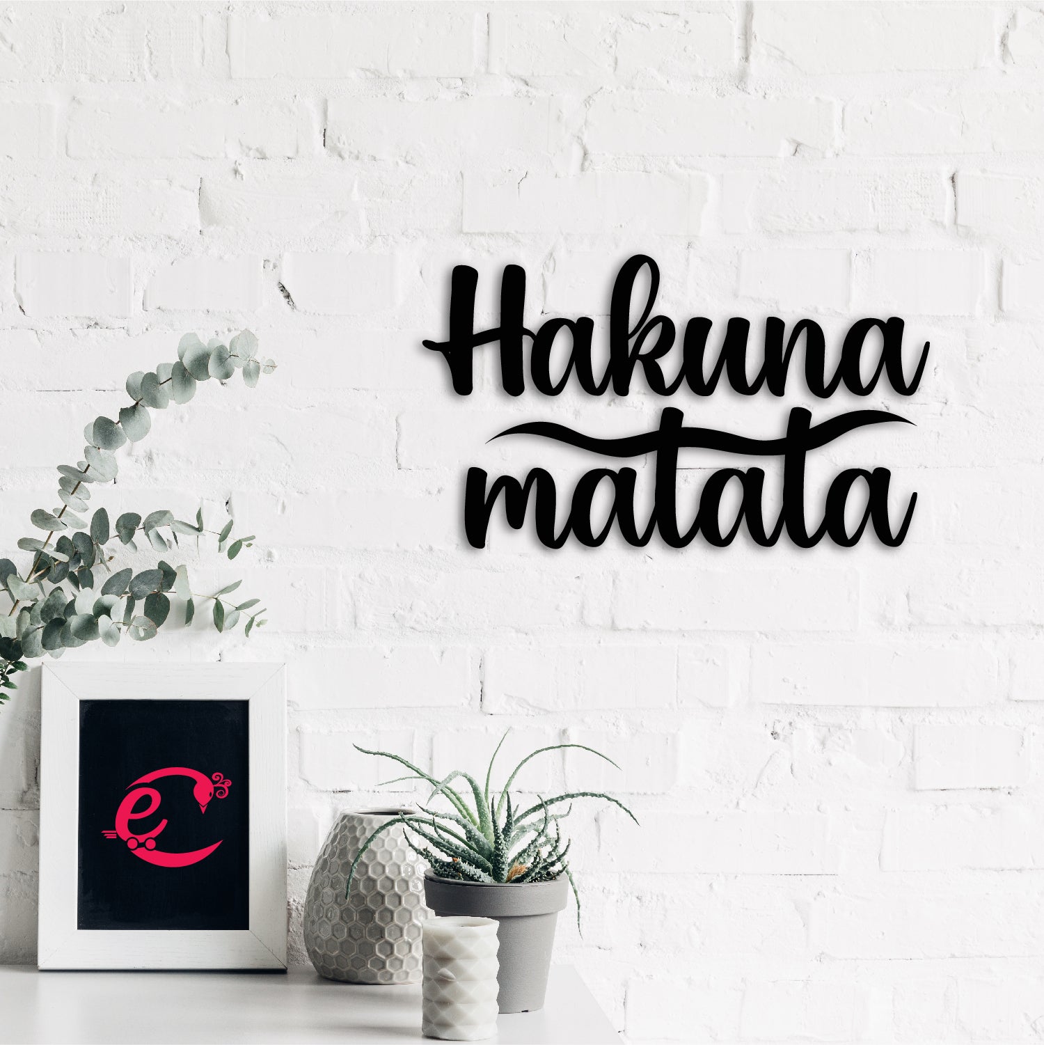 Package Content - One "Hakuna Matata" Black Engineered Wood Wall Art Cutout, Ready to Hang Home Decor