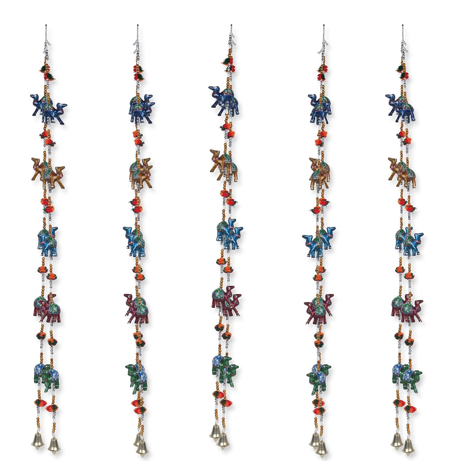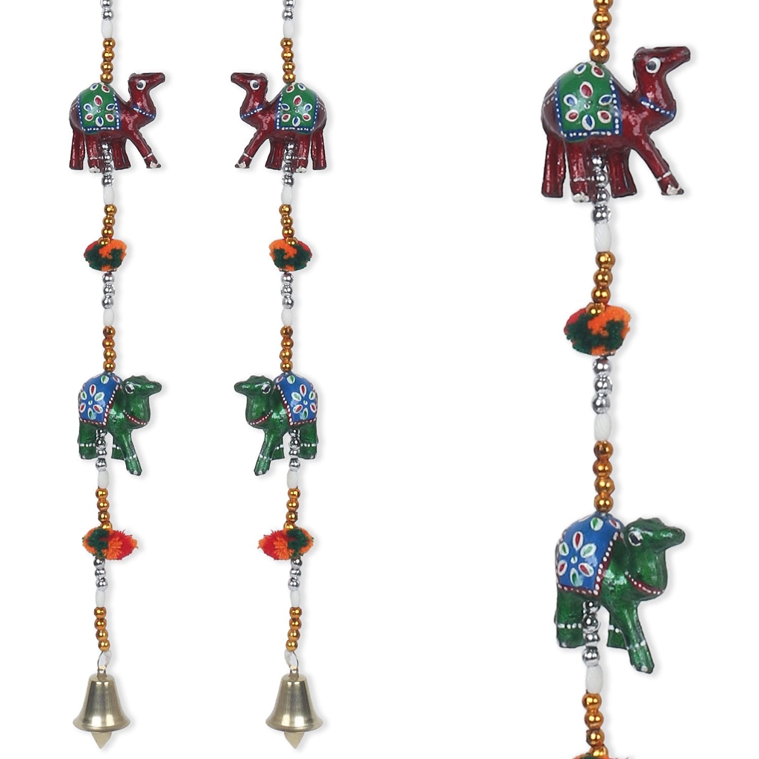 Product Description - Door/Wall hangings have always been seen in almost everyone's home and forever will be. Our Handcraft Rajasthani Camel Door hanging- set of 2 is the best kind of religious door/wall hanging that you can find on our online portal that comes in multicolor. This decorative wall hanging depicting 5 Camels in each string is widely used in worldwide to hang across doors and windows. It is a traditional item made up of fabric, wood, small animal-shaped articles, and artificial pearls. This is an artist handmade 5 camel door hanging piece of art that is made using various ancient techniques and stands as a great gifting option for your loved ones.