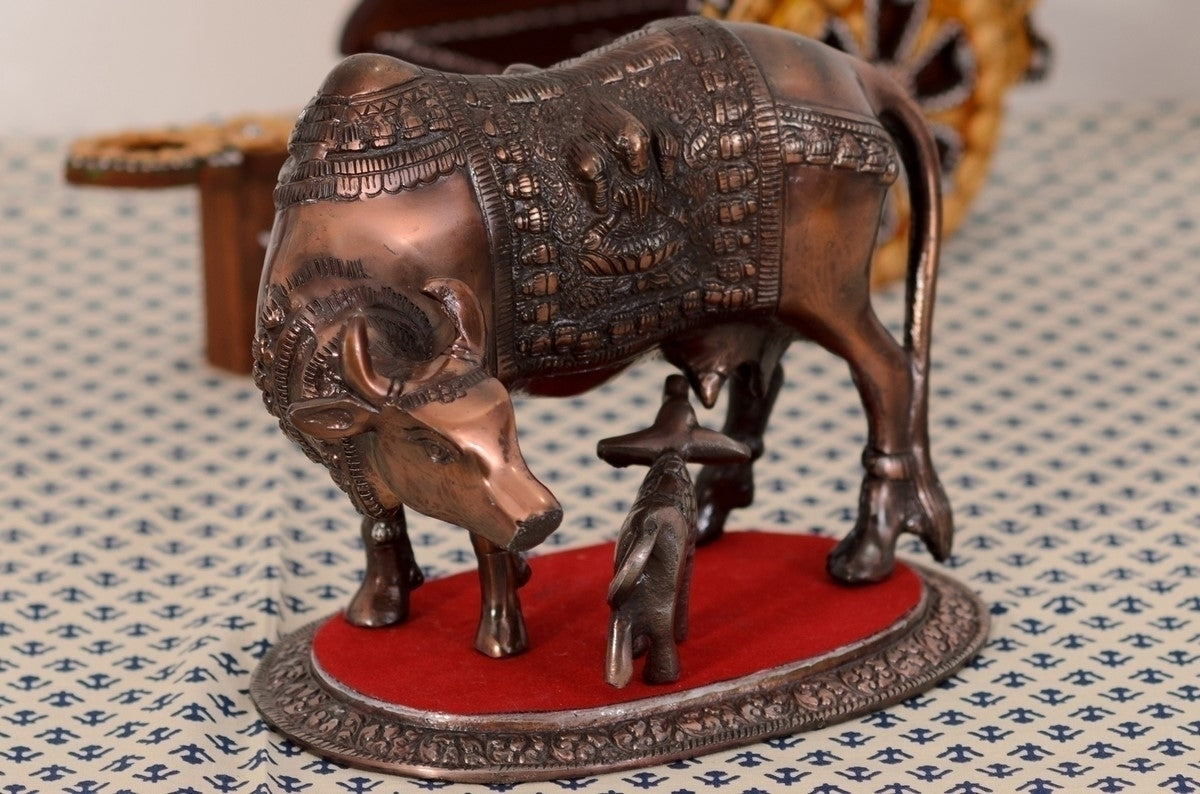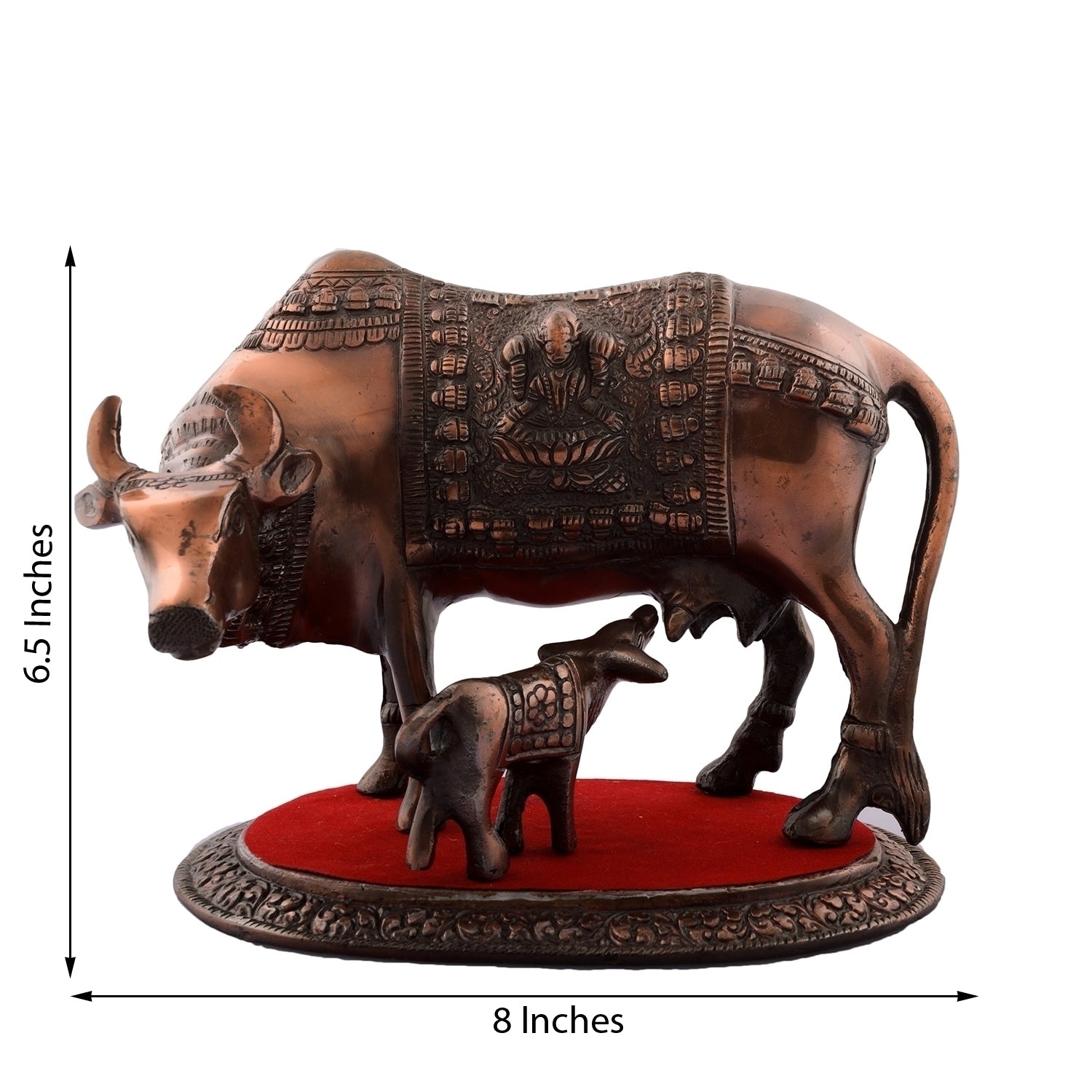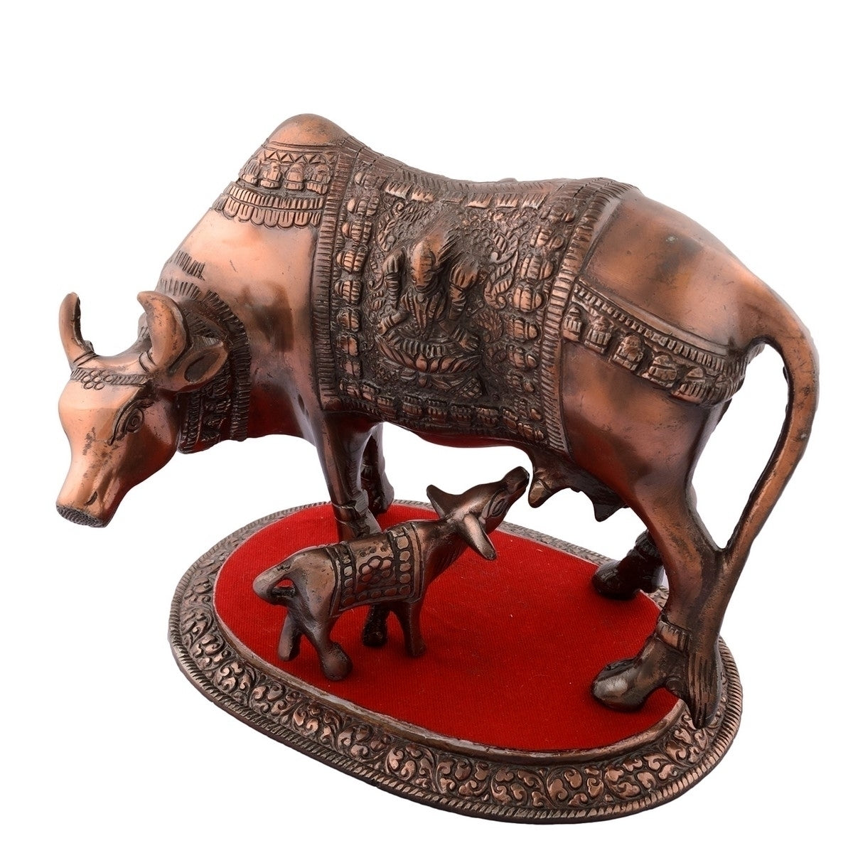 Product Description - Beautiful creation of kamdhenu cow & calf is a perfect symbol of the undying aura of the holy saint that encompasses numerous devotees round the globe. This statue aptly conveys the emotions of people who consider cow (gomatha) as a motherly figure. Kamdhenu cow & calf statues are widely used for decoration purposes in homes and offices. It serves as a great gift, especially around religious celebrations and festivities. This white metal handicraft has been made by skilled artisans from the house of eCraftIndia using various traditional techniques.
