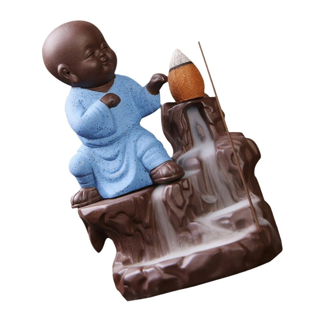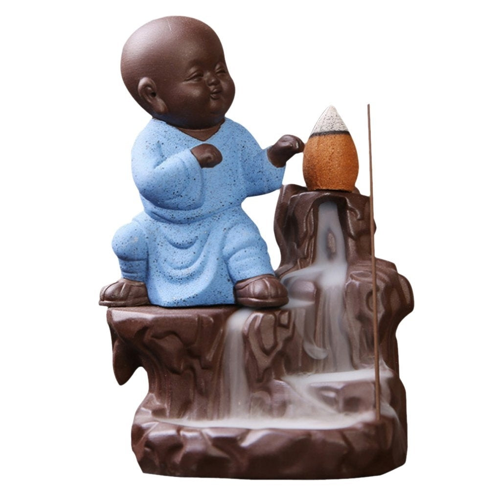 Package Content - One Karate Style Monk Buddha Smoke Backflow Cone Incense Holder Decorative Showpiece with 10 free Smoke Backflow Scented Cone Incenses