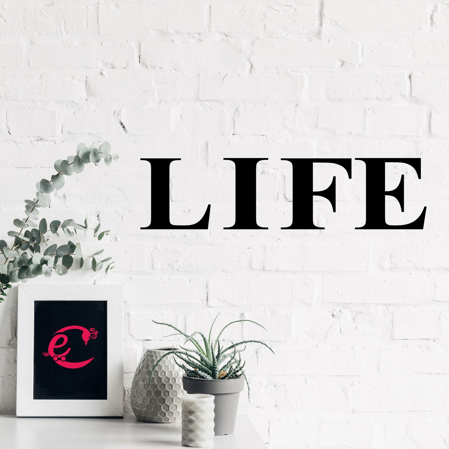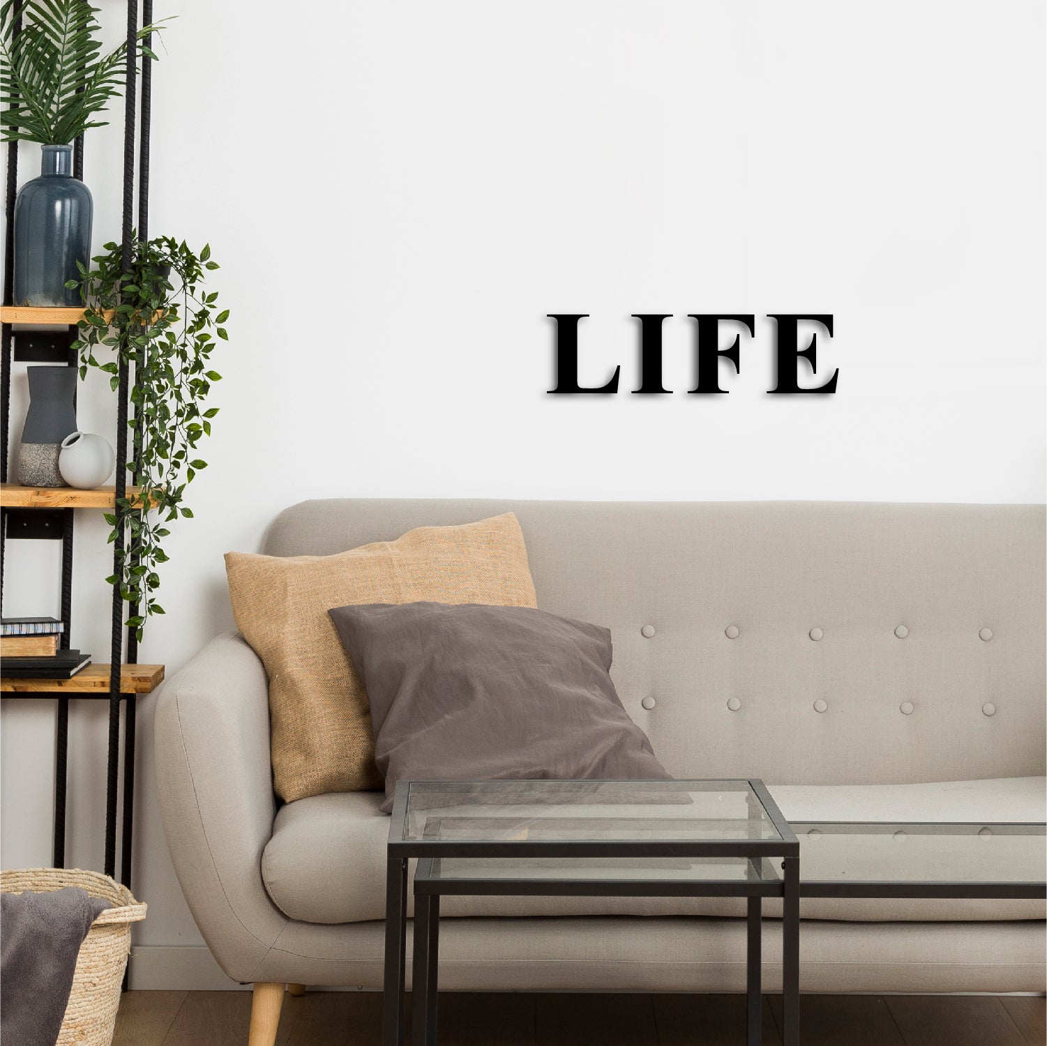 Package Content - One "LIFE" Black Engineered Wood Wall Art Cutout, Ready to Hang Home Decor